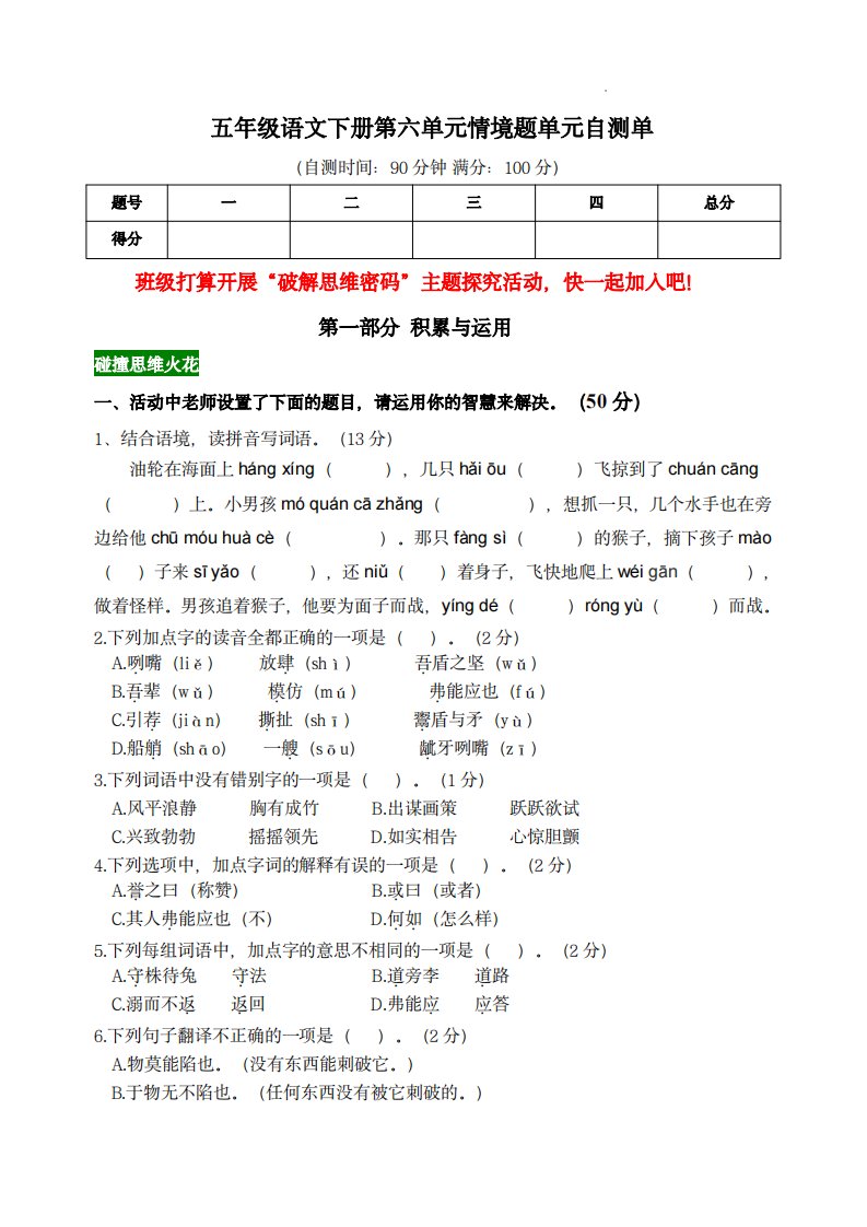 当前位置: 首页小学资源小学五年级正文 【第六单元情境题单元自测单】五下语文_共8页 小学五年级 6 天前 0 0 5 以上为部分内容预览,如需源文档请登录您的会员账号进行下载! 声明:本站所有文章,如无特殊说明或标注,均为本站原创发布。任何个人或组织,在未征得本站同意时,禁止复制、盗用、采集、发布本站内容到任何网站、书籍等各类媒体平台。如若本站内容侵犯了原著者的合法权益,可联系我们进行处理。 尚学资源永久会员 打赏 收藏 海报 链接