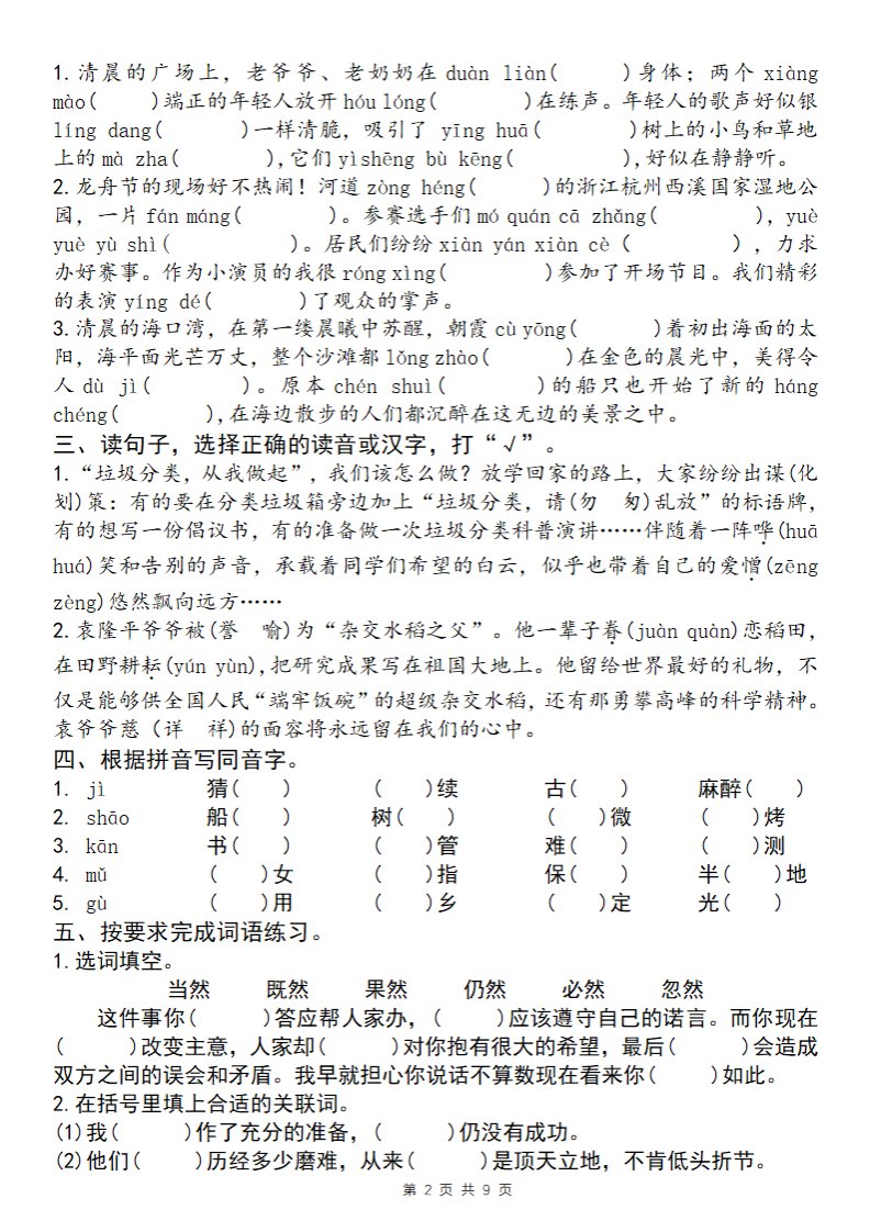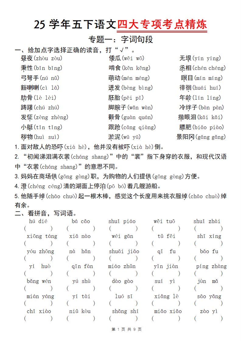 当前位置: 首页小学资源小学五年级正文 25学年五下语文四大专项考点精炼(专题一:字词句段)_共8页 小学五年级 6 天前 0 0 5 以上为部分内容预览,如需源文档请登录您的会员账号进行下载! 声明:本站所有文章,如无特殊说明或标注,均为本站原创发布。任何个人或组织,在未征得本站同意时,禁止复制、盗用、采集、发布本站内容到任何网站、书籍等各类媒体平台。如若本站内容侵犯了原著者的合法权益,可联系我们进行处理。 尚学资源永久会员 打赏 收藏 海报 链接