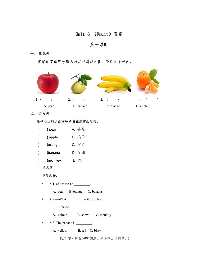 当前位置: 首页小学资源小学一年级正文 一年级英语上册Unit6习题(1)(人教一起点)_共2页 小学一年级 2 周前 0 0 5 以上为部分内容预览,如需源文档请登录您的会员账号进行下载! 声明:本站所有文章,如无特殊说明或标注,均为本站原创发布。任何个人或组织,在未征得本站同意时,禁止复制、盗用、采集、发布本站内容到任何网站、书籍等各类媒体平台。如若本站内容侵犯了原著者的合法权益,可联系我们进行处理。 尚学资源永久会员 打赏 收藏 海报 链接
