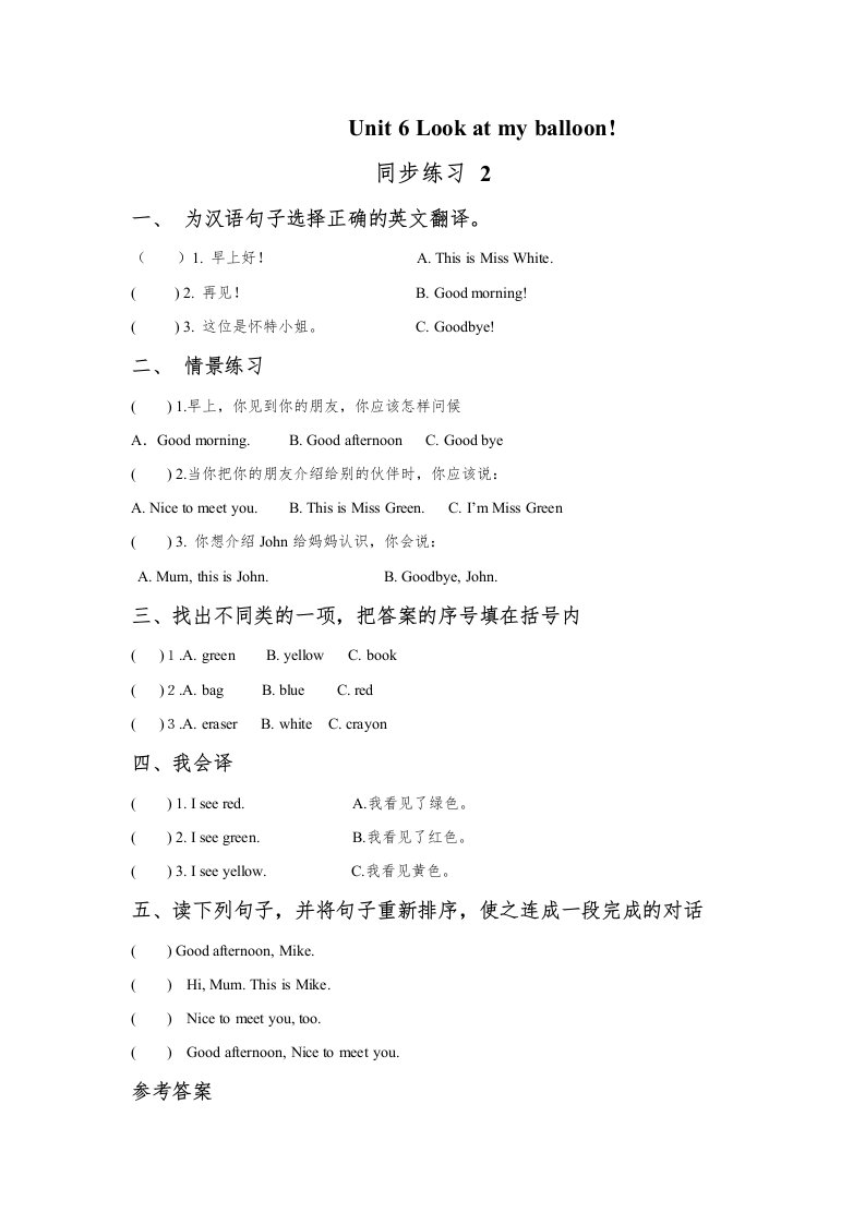 当前位置: 首页小学资源小学一年级正文 一年级英语上册Unit6Lookatmyballoon!同步练习2(人教一起点)_共2页 小学一年级 2 周前 0 0 5 以上为部分内容预览,如需源文档请登录您的会员账号进行下载! 声明:本站所有文章,如无特殊说明或标注,均为本站原创发布。任何个人或组织,在未征得本站同意时,禁止复制、盗用、采集、发布本站内容到任何网站、书籍等各类媒体平台。如若本站内容侵犯了原著者的合法权益,可联系我们进行处理。 尚学资源永久会员 打赏 收藏 海报 链接