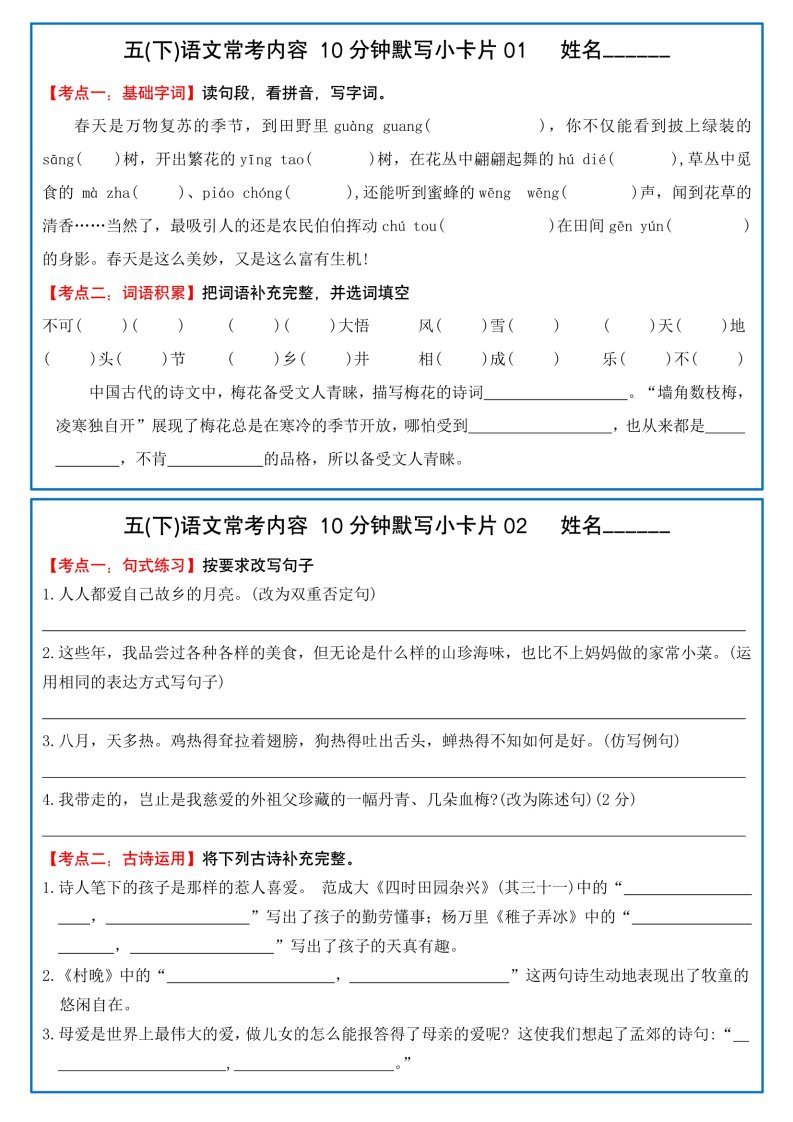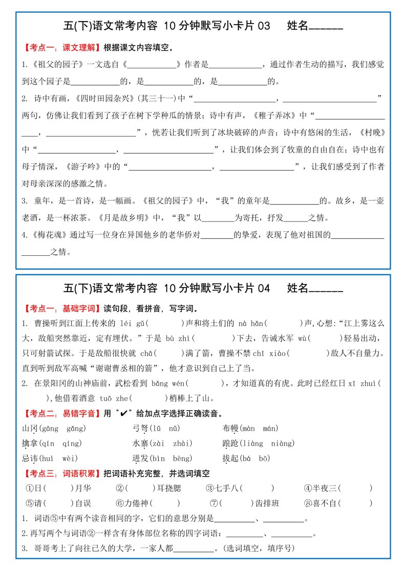 当前位置: 首页小学资源小学五年级正文 五下语文10分钟默写小卡片_共8页 小学五年级 6 天前 0 0 5 以上为部分内容预览,如需源文档请登录您的会员账号进行下载! 声明:本站所有文章,如无特殊说明或标注,均为本站原创发布。任何个人或组织,在未征得本站同意时,禁止复制、盗用、采集、发布本站内容到任何网站、书籍等各类媒体平台。如若本站内容侵犯了原著者的合法权益,可联系我们进行处理。 尚学资源永久会员 打赏 收藏 海报 链接