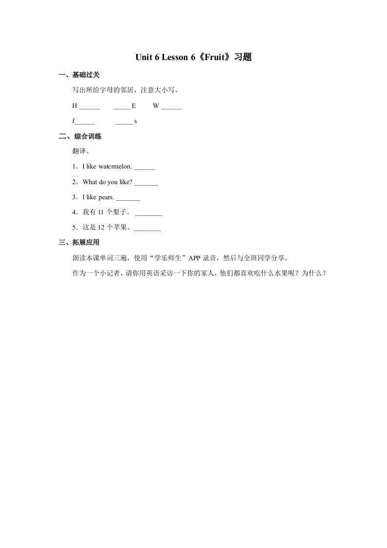 一年级英语上册Unit6lesson6《Fruit》习题(人教一起点)_共2页