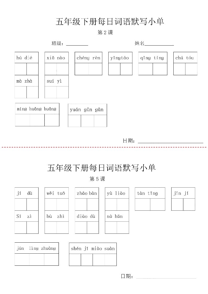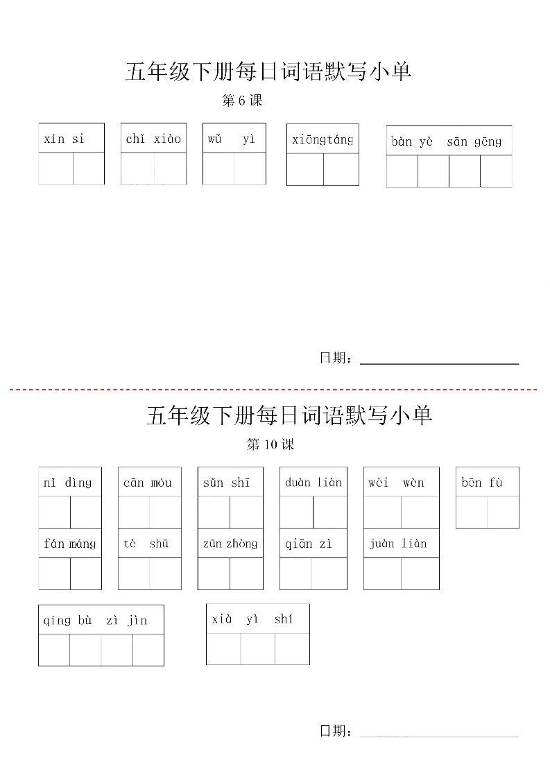【每日词语默写小单】五下语文_共6页