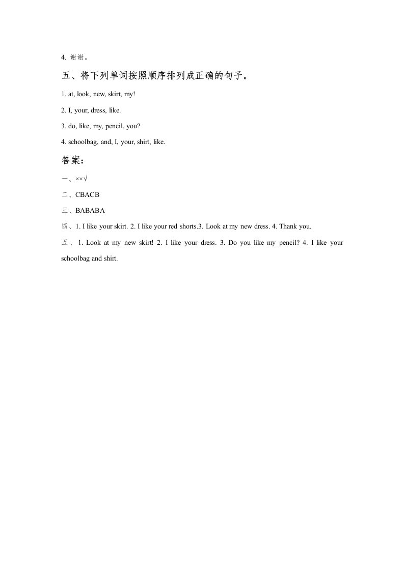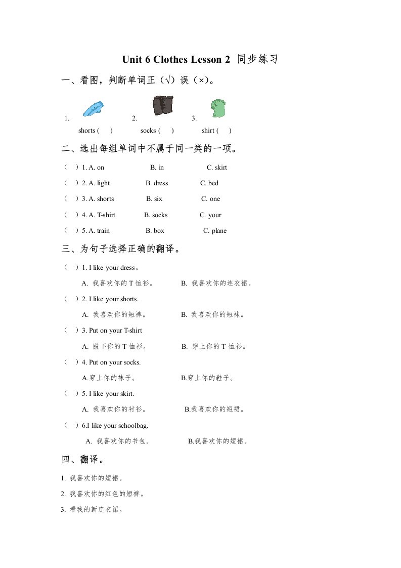 当前位置: 首页小学资源小学一年级正文 一年级英语上册Unit6ClothesLesson2同步练习3(人教一起点)_共2页 小学一年级 2 周前 0 0 5 以上为部分内容预览,如需源文档请登录您的会员账号进行下载! 声明:本站所有文章,如无特殊说明或标注,均为本站原创发布。任何个人或组织,在未征得本站同意时,禁止复制、盗用、采集、发布本站内容到任何网站、书籍等各类媒体平台。如若本站内容侵犯了原著者的合法权益,可联系我们进行处理。 尚学资源永久会员 打赏 收藏 海报 链接