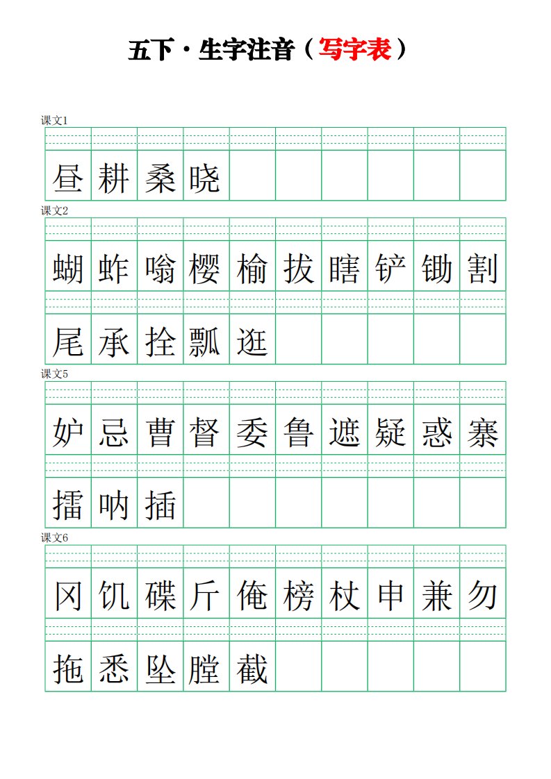 当前位置: 首页小学资源小学五年级正文 【写字表-注音练习】五下语文_共4页 小学五年级 6 天前 0 0 5 以上为部分内容预览,如需源文档请登录您的会员账号进行下载! 声明:本站所有文章,如无特殊说明或标注,均为本站原创发布。任何个人或组织,在未征得本站同意时,禁止复制、盗用、采集、发布本站内容到任何网站、书籍等各类媒体平台。如若本站内容侵犯了原著者的合法权益,可联系我们进行处理。 尚学资源永久会员 打赏 收藏 海报 链接