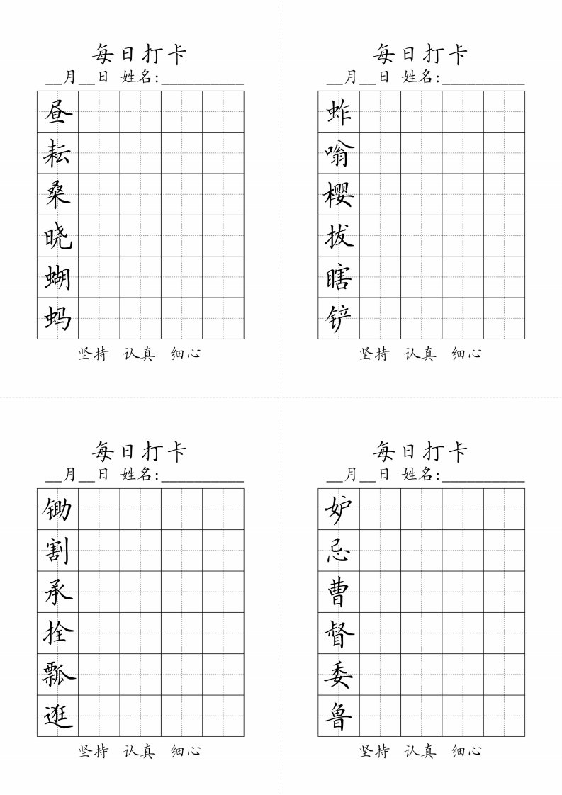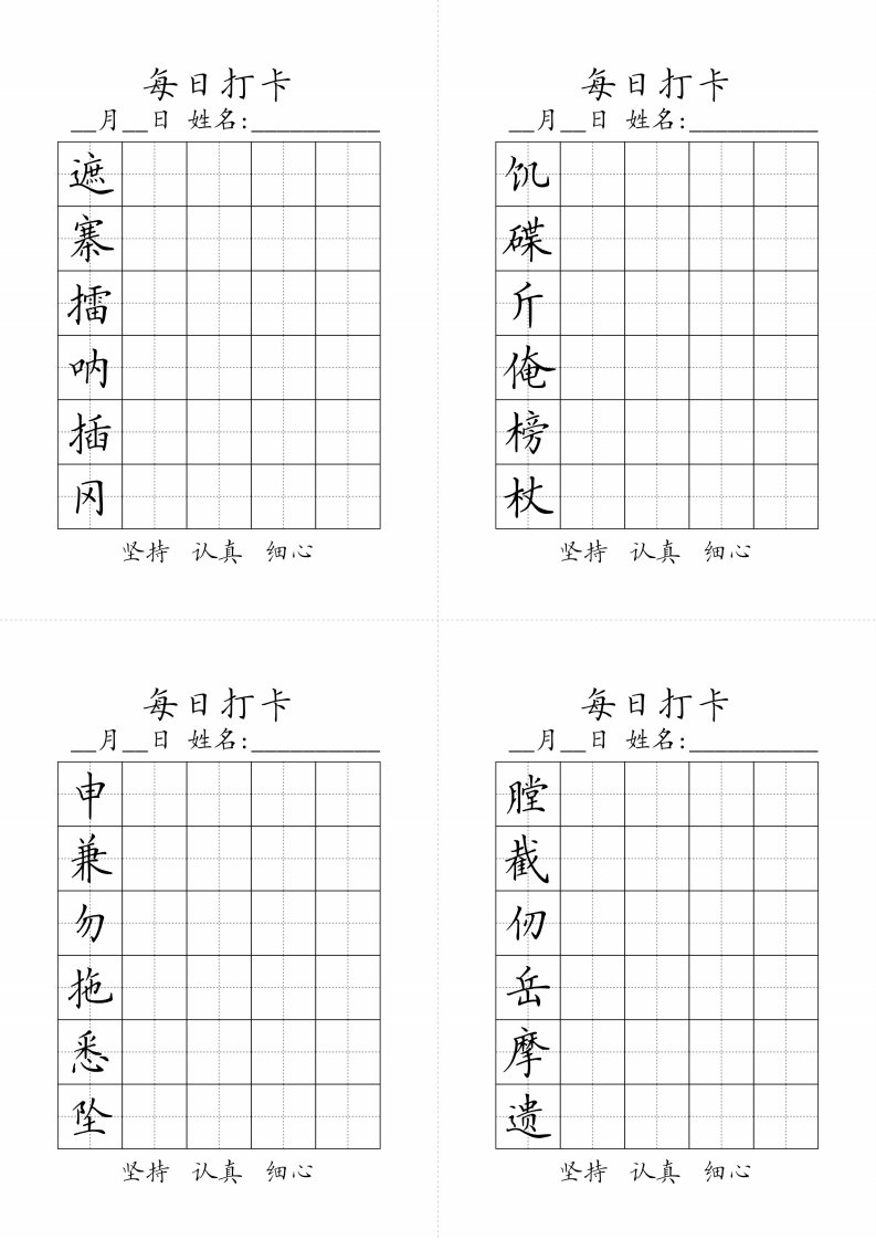 当前位置: 首页小学资源小学五年级正文 【写字表-字帖(每日打卡)】五下语文_共8页 小学五年级 6 天前 0 0 5 以上为部分内容预览,如需源文档请登录您的会员账号进行下载! 声明:本站所有文章,如无特殊说明或标注,均为本站原创发布。任何个人或组织,在未征得本站同意时,禁止复制、盗用、采集、发布本站内容到任何网站、书籍等各类媒体平台。如若本站内容侵犯了原著者的合法权益,可联系我们进行处理。 尚学资源永久会员 打赏 收藏 海报 链接