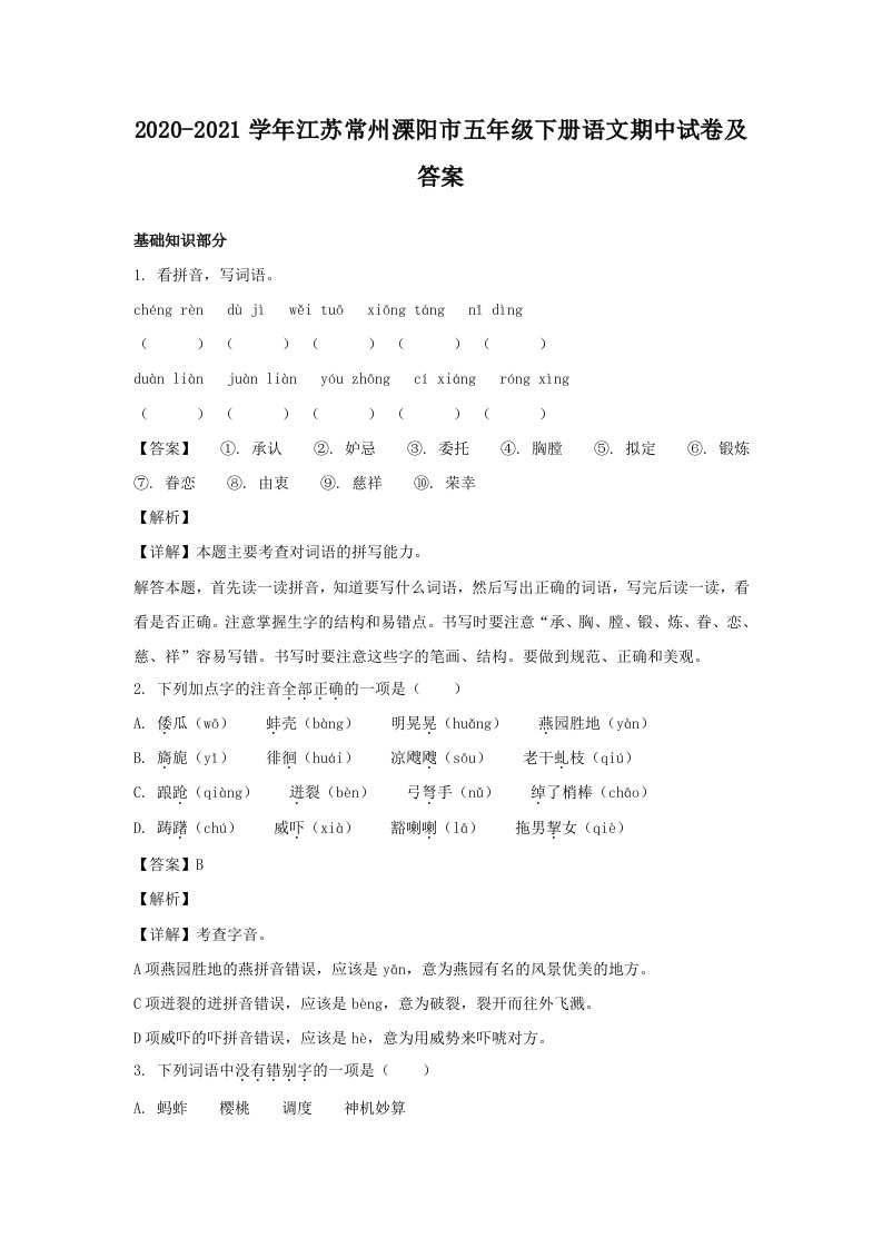 当前位置: 首页小学资源小学五年级正文 2020-2021学年江苏常州溧阳市五年级下册语文期中试卷及答案(Word版)_共14页 小学五年级 6 天前 0 0 10 以上为部分内容预览,如需源文档请登录您的会员账号进行下载! 声明:本站所有文章,如无特殊说明或标注,均为本站原创发布。任何个人或组织,在未征得本站同意时,禁止复制、盗用、采集、发布本站内容到任何网站、书籍等各类媒体平台。如若本站内容侵犯了原著者的合法权益,可联系我们进行处理。 尚学资源永久会员 打赏 收藏 海报 链接