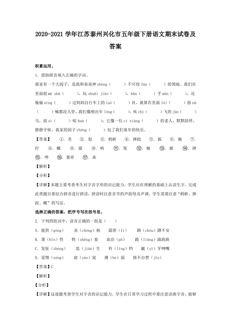 当前位置: 首页小学资源小学五年级正文 2020-2021学年江苏泰州兴化市五年级下册语文期末试卷及答案(Word版)_共16页 小学五年级 6 天前 0 0 10 以上为部分内容预览,如需源文档请登录您的会员账号进行下载! 声明:本站所有文章,如无特殊说明或标注,均为本站原创发布。任何个人或组织,在未征得本站同意时,禁止复制、盗用、采集、发布本站内容到任何网站、书籍等各类媒体平台。如若本站内容侵犯了原著者的合法权益,可联系我们进行处理。 尚学资源永久会员 打赏 收藏 海报 链接