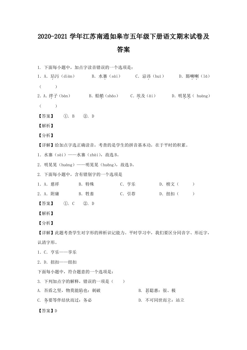 当前位置: 首页小学资源小学五年级正文 2020-2021学年江苏南通如皋市五年级下册语文期末试卷及答案(Word版)_共11页 小学五年级 6 天前 0 0 10 以上为部分内容预览,如需源文档请登录您的会员账号进行下载! 声明:本站所有文章,如无特殊说明或标注,均为本站原创发布。任何个人或组织,在未征得本站同意时,禁止复制、盗用、采集、发布本站内容到任何网站、书籍等各类媒体平台。如若本站内容侵犯了原著者的合法权益,可联系我们进行处理。 尚学资源永久会员 打赏 收藏 海报 链接