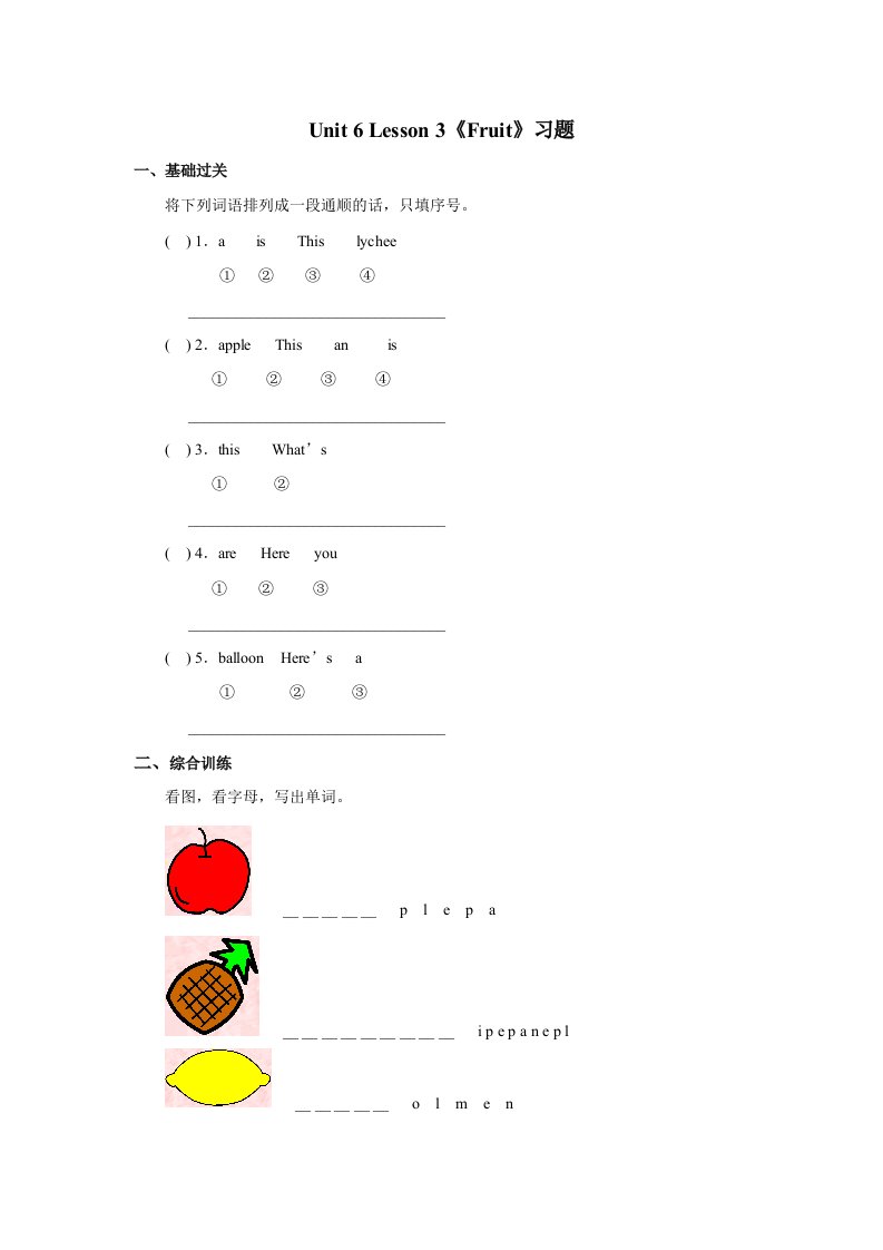 当前位置: 首页小学资源小学一年级正文 一年级英语上册Unit6+lesson3《Fruit》习题(人教一起点)_共3页 小学一年级 2 周前 0 0 5 以上为部分内容预览,如需源文档请登录您的会员账号进行下载! 声明:本站所有文章,如无特殊说明或标注,均为本站原创发布。任何个人或组织,在未征得本站同意时,禁止复制、盗用、采集、发布本站内容到任何网站、书籍等各类媒体平台。如若本站内容侵犯了原著者的合法权益,可联系我们进行处理。 尚学资源永久会员 打赏 收藏 海报 链接