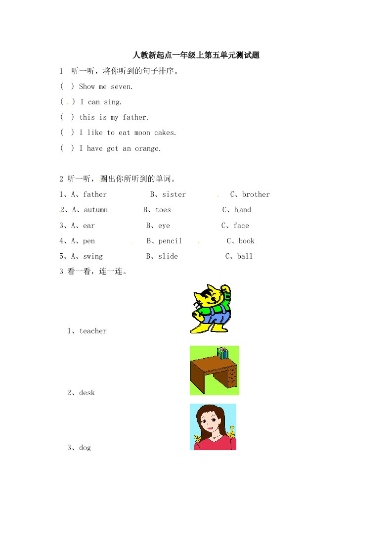 一年级英语上册第五单元测试题(人教一起点)_共3页
