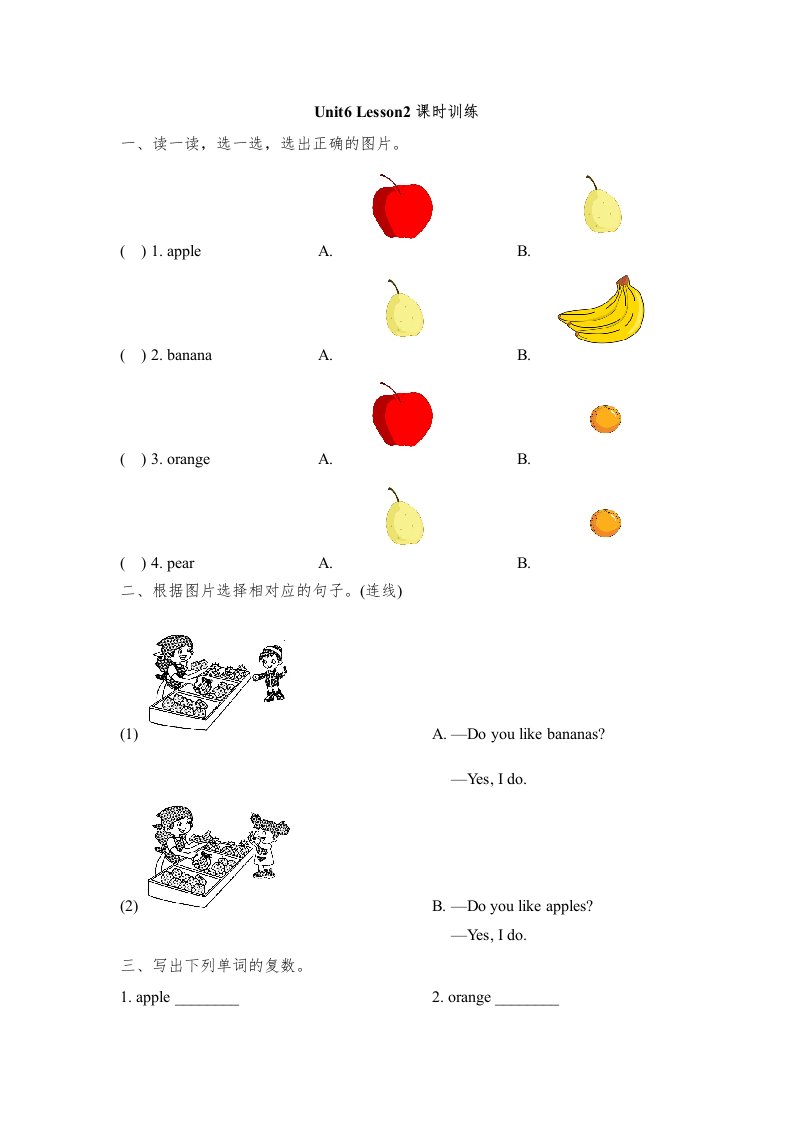 一年级英语上册Unit6_Lesson2课时训练(人教一起点)_共4页