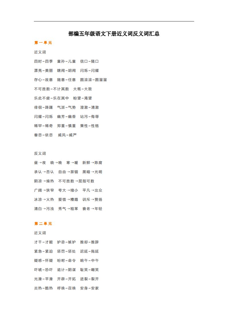 当前位置: 首页小学资源小学五年级正文 五年级语文下册近义词反义词汇总(部编版)_共5页 小学五年级 6 天前 0 0 5 以上为部分内容预览,如需源文档请登录您的会员账号进行下载! 声明:本站所有文章,如无特殊说明或标注,均为本站原创发布。任何个人或组织,在未征得本站同意时,禁止复制、盗用、采集、发布本站内容到任何网站、书籍等各类媒体平台。如若本站内容侵犯了原著者的合法权益,可联系我们进行处理。 尚学资源永久会员 打赏 收藏 海报 链接