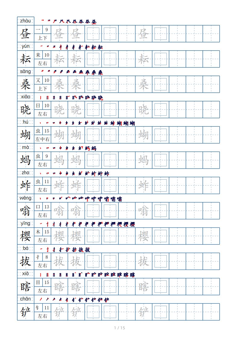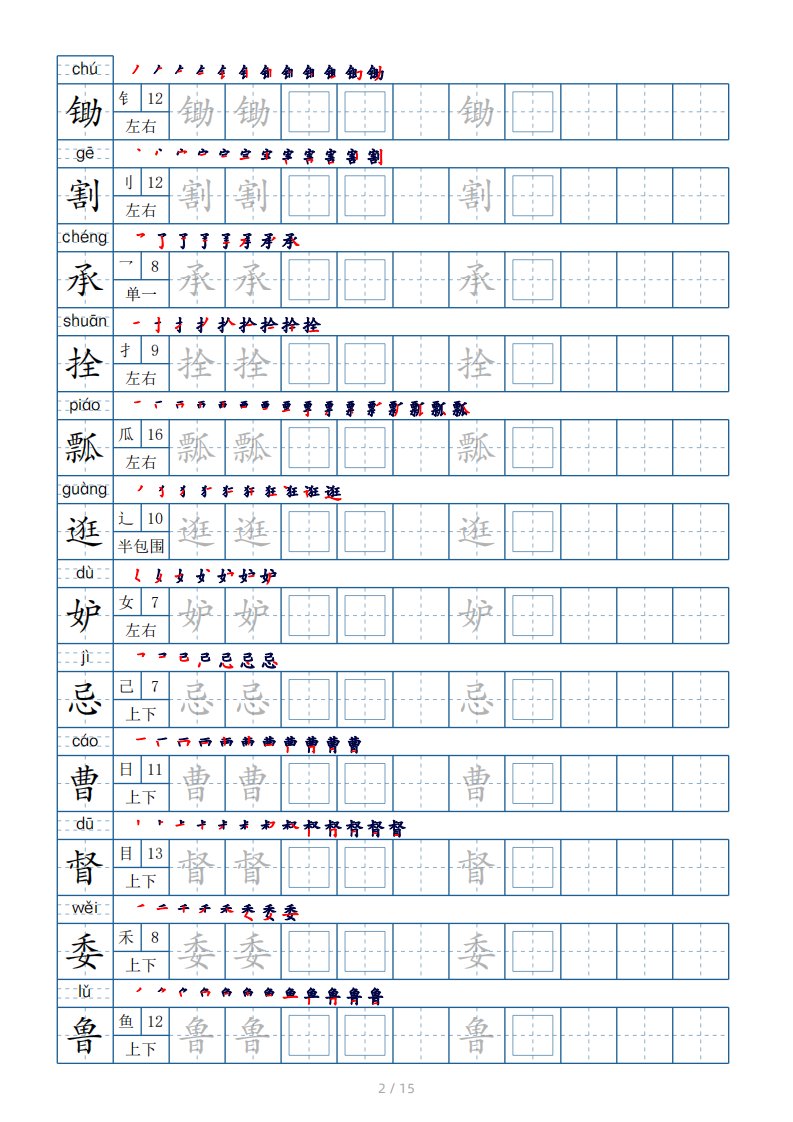 当前位置: 首页小学资源小学五年级正文 五年级下册生字表180个,字帖15页(偏旁部首笔顺拼音)_共15页 小学五年级 6 天前 0 0 10 以上为部分内容预览,如需源文档请登录您的会员账号进行下载! 声明:本站所有文章,如无特殊说明或标注,均为本站原创发布。任何个人或组织,在未征得本站同意时,禁止复制、盗用、采集、发布本站内容到任何网站、书籍等各类媒体平台。如若本站内容侵犯了原著者的合法权益,可联系我们进行处理。 尚学资源永久会员 打赏 收藏 海报 链接