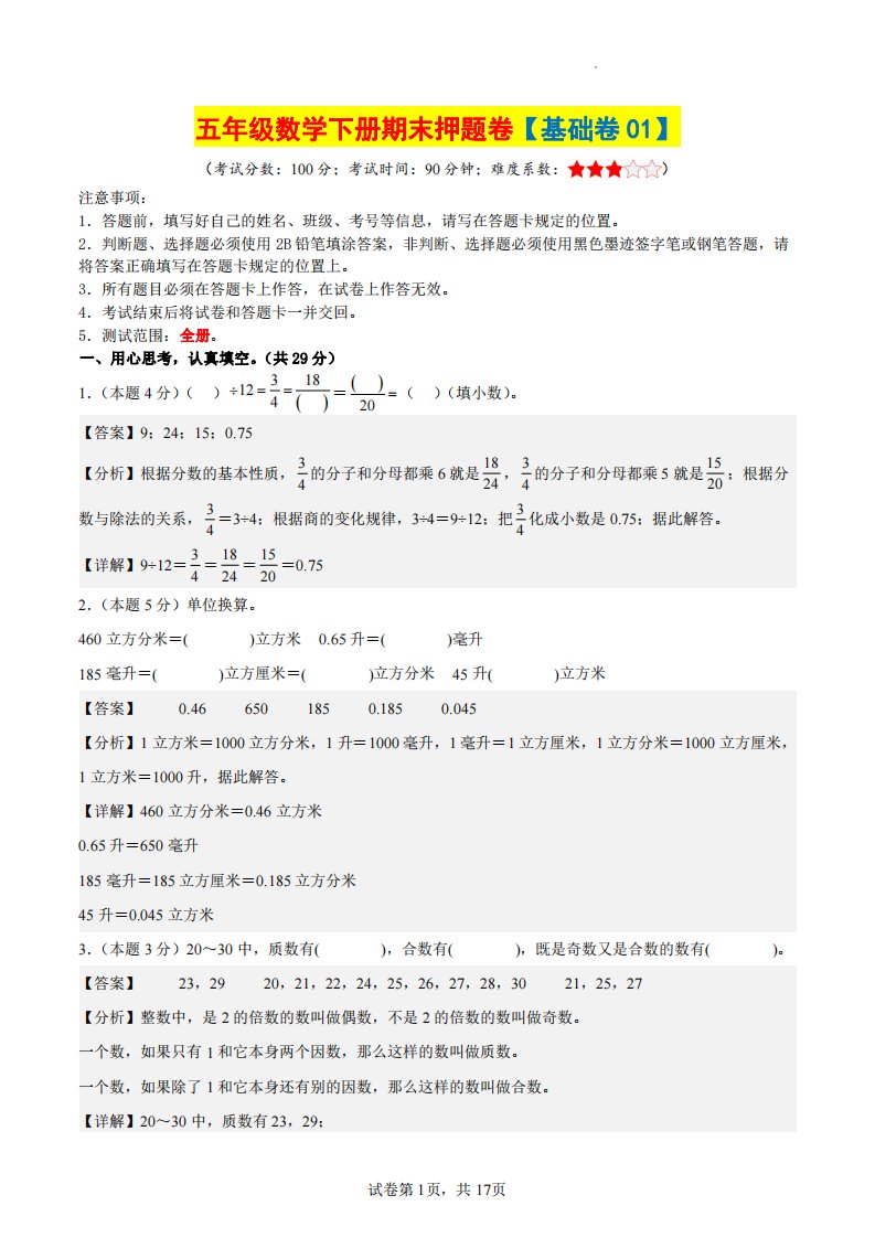 当前位置: 首页小学资源小学五年级正文 五下数学(基础卷01)(参考解析)_共17页 小学五年级 6 天前 0 0 10 以上为部分内容预览,如需源文档请登录您的会员账号进行下载! 声明:本站所有文章,如无特殊说明或标注,均为本站原创发布。任何个人或组织,在未征得本站同意时,禁止复制、盗用、采集、发布本站内容到任何网站、书籍等各类媒体平台。如若本站内容侵犯了原著者的合法权益,可联系我们进行处理。 尚学资源永久会员 打赏 收藏 海报 链接