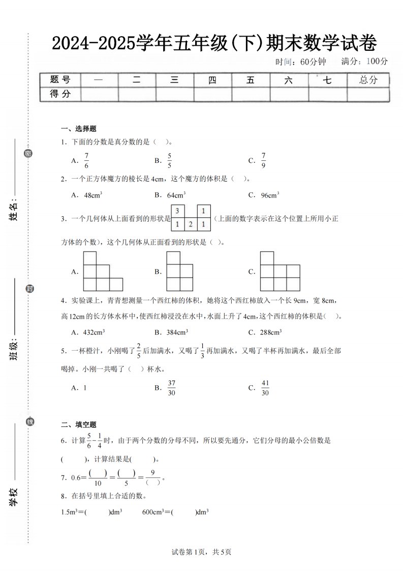当前位置: 首页小学资源小学五年级正文 24-25五下人教版数学期末试卷一(含答案17页)_共17页 小学五年级 6 天前 0 0 10 以上为部分内容预览,如需源文档请登录您的会员账号进行下载! 声明:本站所有文章,如无特殊说明或标注,均为本站原创发布。任何个人或组织,在未征得本站同意时,禁止复制、盗用、采集、发布本站内容到任何网站、书籍等各类媒体平台。如若本站内容侵犯了原著者的合法权益,可联系我们进行处理。 尚学资源永久会员 打赏 收藏 海报 链接