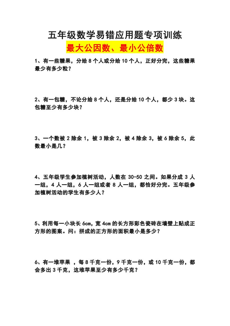 当前位置: 首页小学资源小学五年级正文 五下数学易错应用题专项训练(最大公因数最小公倍数)_共4页 小学五年级 6 天前 0 0 5 以上为部分内容预览,如需源文档请登录您的会员账号进行下载! 声明:本站所有文章,如无特殊说明或标注,均为本站原创发布。任何个人或组织,在未征得本站同意时,禁止复制、盗用、采集、发布本站内容到任何网站、书籍等各类媒体平台。如若本站内容侵犯了原著者的合法权益,可联系我们进行处理。 尚学资源永久会员 打赏 收藏 海报 链接