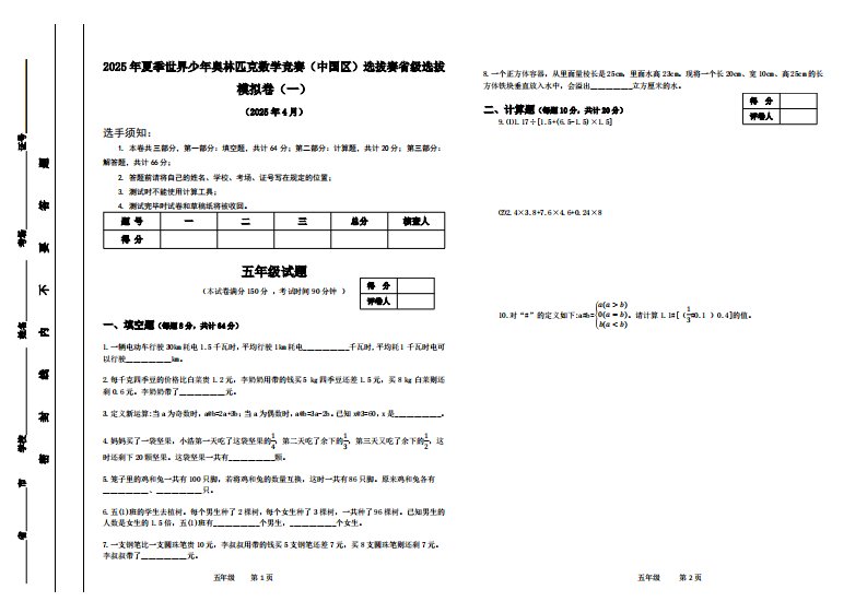 当前位置: 首页小学资源小学五年级正文 2025年夏季“世少赛”模拟卷五年级下数学_共2页 小学五年级 7 天前 0 0 5 以上为部分内容预览,如需源文档请登录您的会员账号进行下载! 声明:本站所有文章,如无特殊说明或标注,均为本站原创发布。任何个人或组织,在未征得本站同意时,禁止复制、盗用、采集、发布本站内容到任何网站、书籍等各类媒体平台。如若本站内容侵犯了原著者的合法权益,可联系我们进行处理。 尚学资源永久会员 打赏 收藏 海报 链接