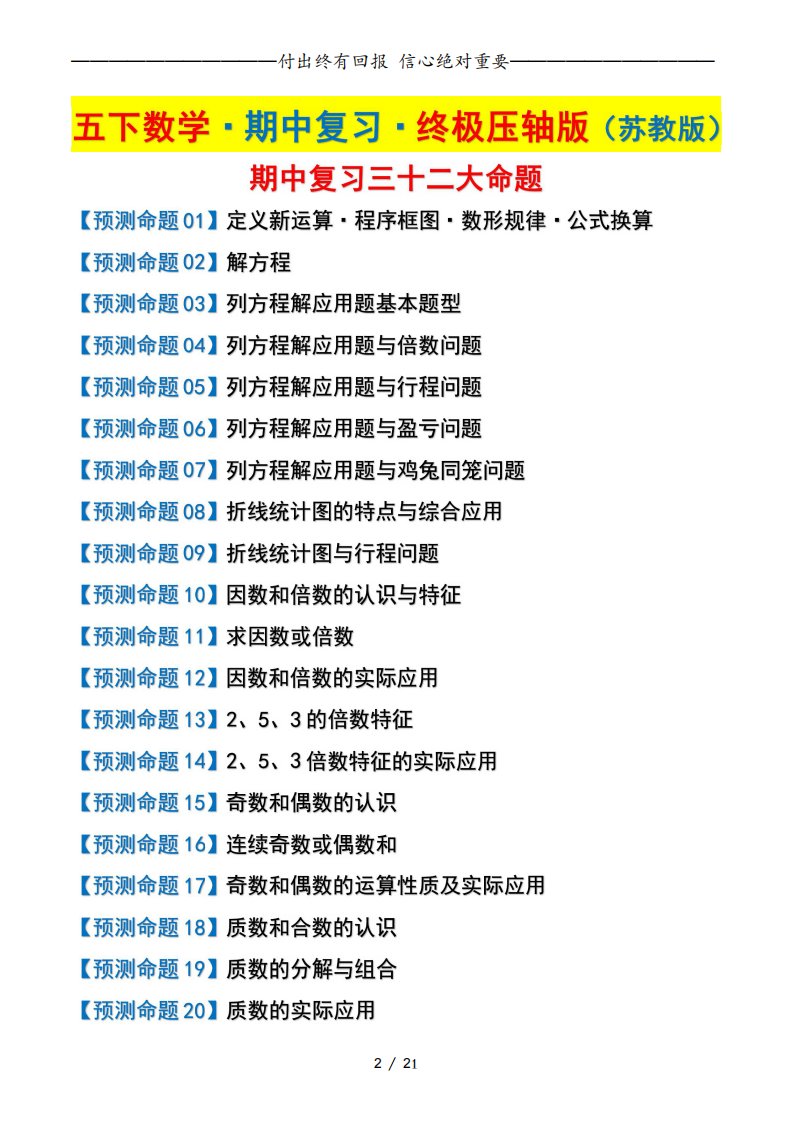 当前位置: 首页小学资源小学五年级正文 五下数学期中复习·终极压轴版(原卷版)苏教版21页_共21页 小学五年级 6 天前 0 0 15 以上为部分内容预览,如需源文档请登录您的会员账号进行下载! 声明:本站所有文章,如无特殊说明或标注,均为本站原创发布。任何个人或组织,在未征得本站同意时,禁止复制、盗用、采集、发布本站内容到任何网站、书籍等各类媒体平台。如若本站内容侵犯了原著者的合法权益,可联系我们进行处理。 尚学资源永久会员 打赏 收藏 海报 链接