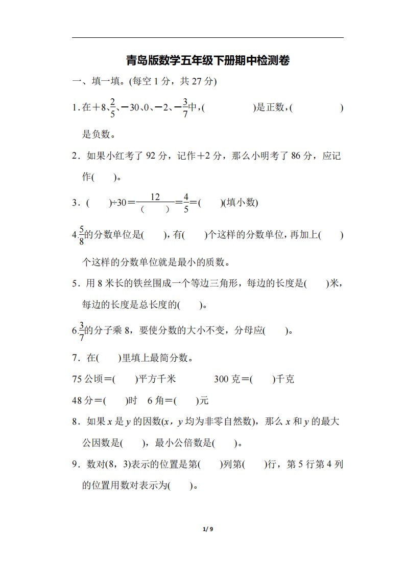 当前位置: 首页小学资源小学五年级正文 五下青岛版数学期中测试卷-4(63制)_共9页 小学五年级 6 天前 0 0 5 以上为部分内容预览,如需源文档请登录您的会员账号进行下载! 声明:本站所有文章,如无特殊说明或标注,均为本站原创发布。任何个人或组织,在未征得本站同意时,禁止复制、盗用、采集、发布本站内容到任何网站、书籍等各类媒体平台。如若本站内容侵犯了原著者的合法权益,可联系我们进行处理。 尚学资源永久会员 打赏 收藏 海报 链接
