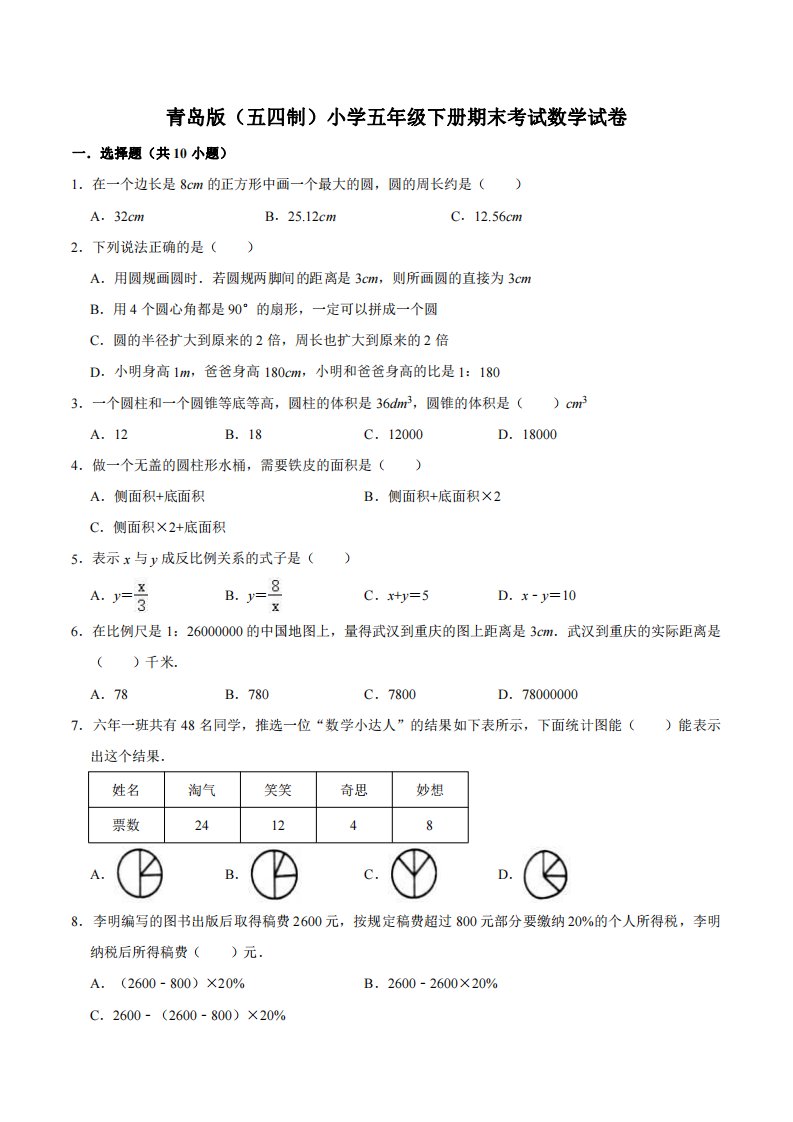 当前位置: 首页小学资源小学五年级正文 五下青岛版数学期末真题卷3(54制)_共13页 小学五年级 6 天前 0 0 10 以上为部分内容预览,如需源文档请登录您的会员账号进行下载! 声明:本站所有文章,如无特殊说明或标注,均为本站原创发布。任何个人或组织,在未征得本站同意时,禁止复制、盗用、采集、发布本站内容到任何网站、书籍等各类媒体平台。如若本站内容侵犯了原著者的合法权益,可联系我们进行处理。 尚学资源永久会员 打赏 收藏 海报 链接