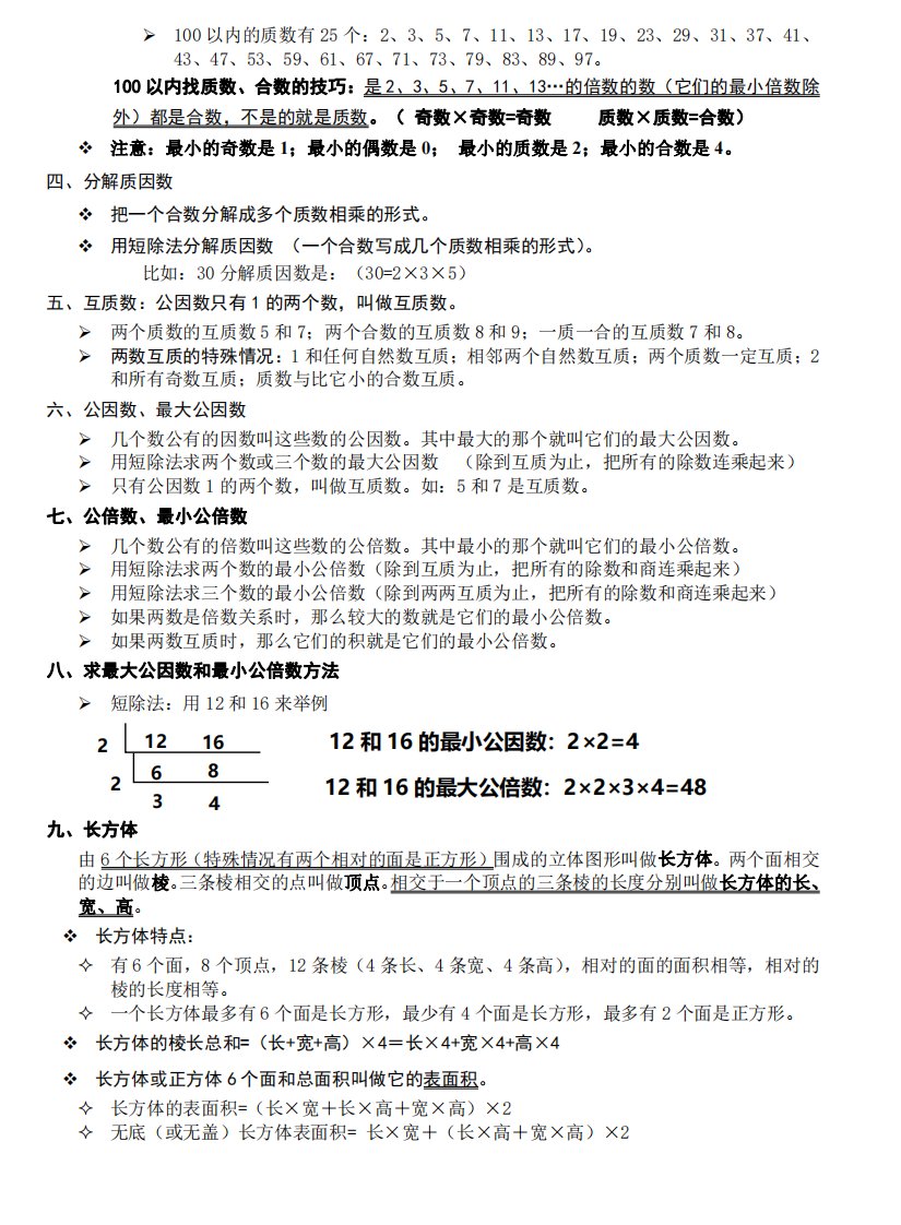 五下数学:知识点读背(通用)_共4页