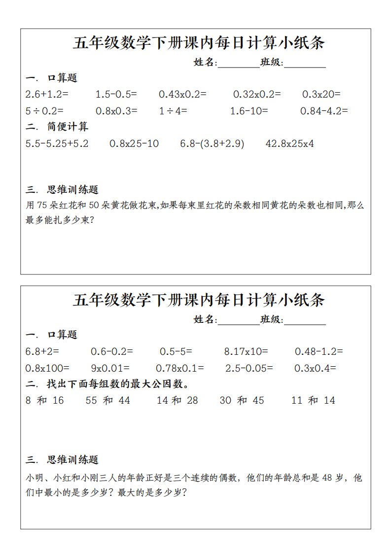 当前位置: 首页小学资源小学五年级正文 五下数学(通用版)每日计算小纸条_共10页 小学五年级 7 天前 0 0 5 以上为部分内容预览,如需源文档请登录您的会员账号进行下载! 声明:本站所有文章,如无特殊说明或标注,均为本站原创发布。任何个人或组织,在未征得本站同意时,禁止复制、盗用、采集、发布本站内容到任何网站、书籍等各类媒体平台。如若本站内容侵犯了原著者的合法权益,可联系我们进行处理。 尚学资源永久会员 打赏 收藏 海报 链接