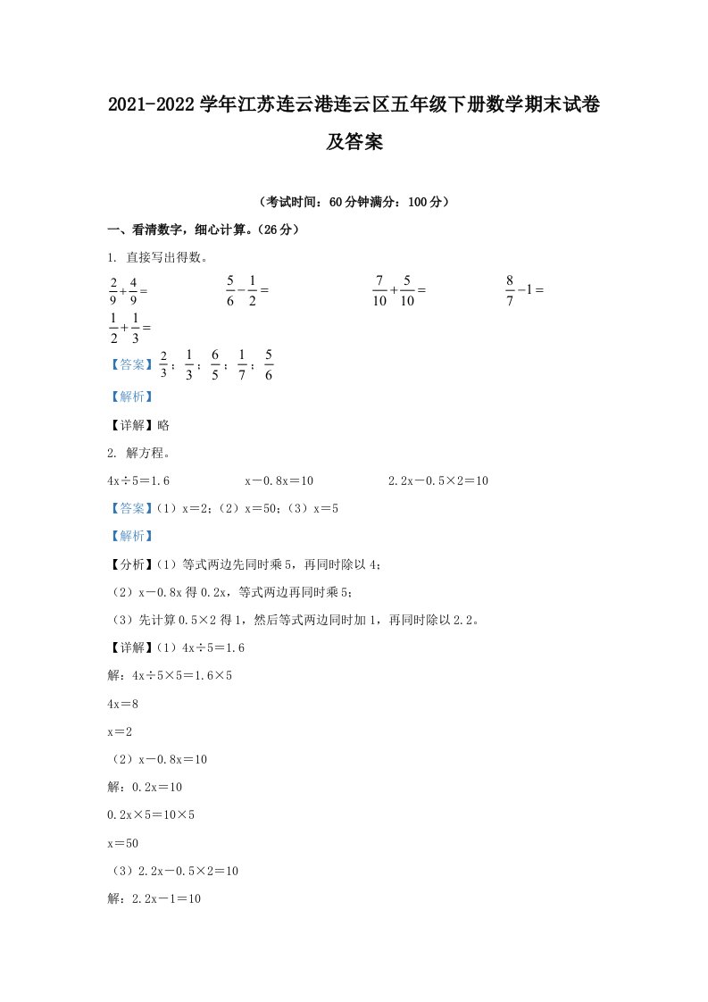 当前位置: 首页小学资源小学五年级正文 2021-2022学年江苏连云港连云区五年级下册数学期末试卷及答案(Word版)_共16页 小学五年级 6 天前 0 0 10 以上为部分内容预览,如需源文档请登录您的会员账号进行下载! 声明:本站所有文章,如无特殊说明或标注,均为本站原创发布。任何个人或组织,在未征得本站同意时,禁止复制、盗用、采集、发布本站内容到任何网站、书籍等各类媒体平台。如若本站内容侵犯了原著者的合法权益,可联系我们进行处理。 尚学资源永久会员 打赏 收藏 海报 链接