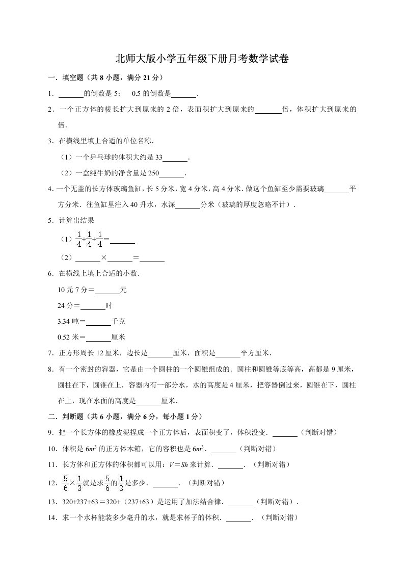 当前位置: 首页小学资源小学五年级正文 五年级数学下册试题月考试卷(有答案)北师大版_共11页 小学五年级 6 天前 0 0 10 以上为部分内容预览,如需源文档请登录您的会员账号进行下载! 声明:本站所有文章,如无特殊说明或标注,均为本站原创发布。任何个人或组织,在未征得本站同意时,禁止复制、盗用、采集、发布本站内容到任何网站、书籍等各类媒体平台。如若本站内容侵犯了原著者的合法权益,可联系我们进行处理。 尚学资源永久会员 打赏 收藏 海报 链接