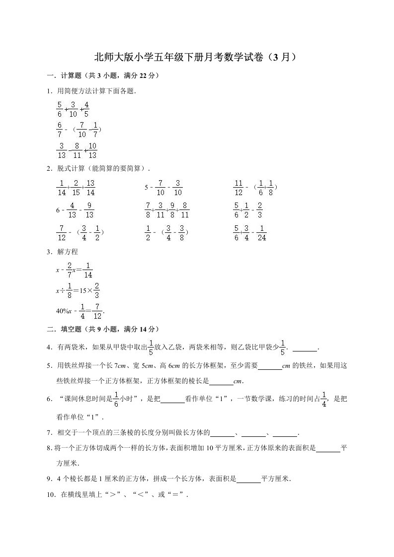 当前位置: 首页小学资源小学五年级正文 五年级数学下册试卷月考试卷(3月)(有答案)北师大版_共11页 小学五年级 6 天前 0 0 10 以上为部分内容预览,如需源文档请登录您的会员账号进行下载! 声明:本站所有文章,如无特殊说明或标注,均为本站原创发布。任何个人或组织,在未征得本站同意时,禁止复制、盗用、采集、发布本站内容到任何网站、书籍等各类媒体平台。如若本站内容侵犯了原著者的合法权益,可联系我们进行处理。 尚学资源永久会员 打赏 收藏 海报 链接