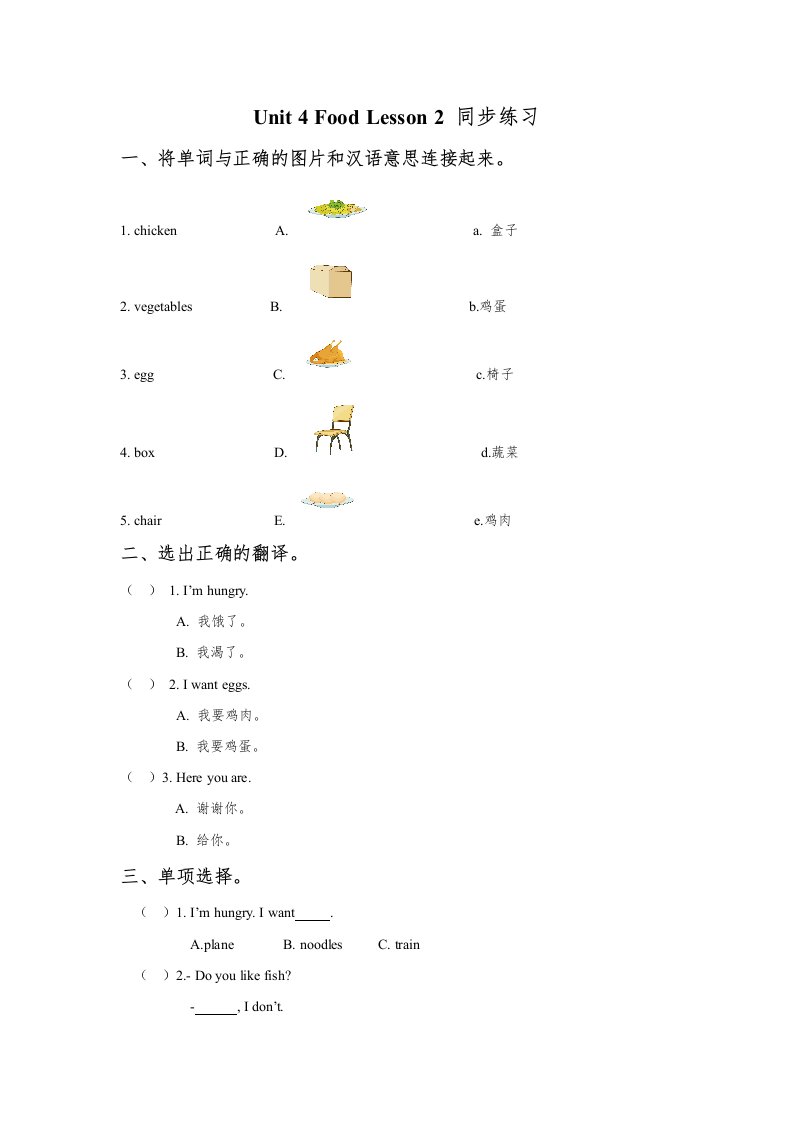 一年级英语上册Unit4FoodLesson2同步练习3(人教一起点)_共3页