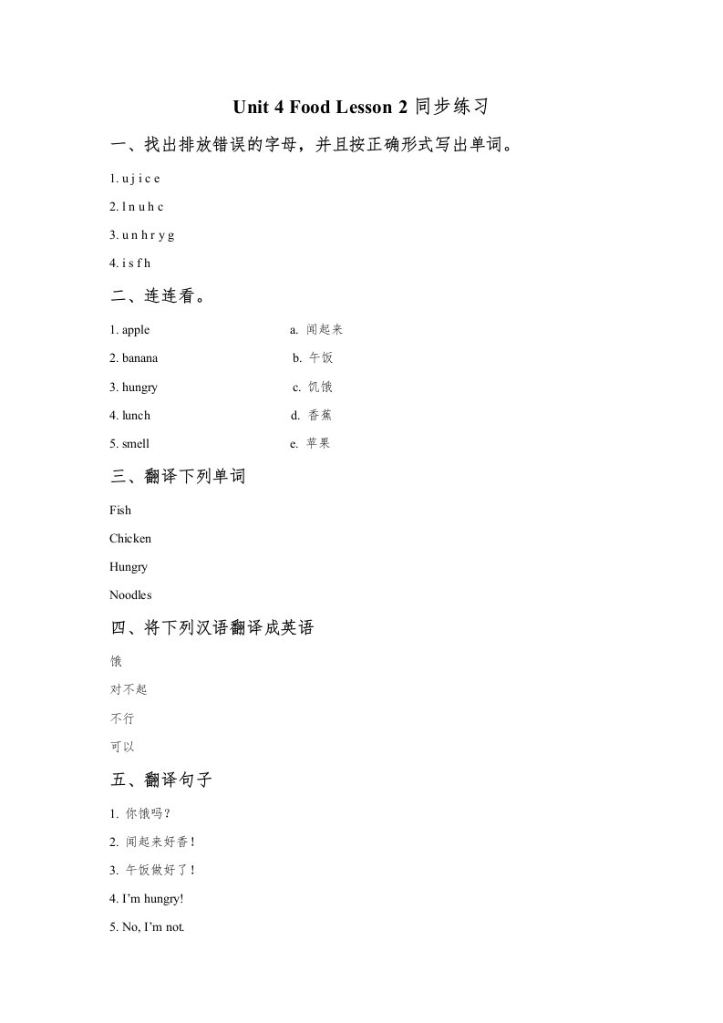 一年级英语上册Unit4FoodLesson2同步练习2(人教一起点)_共2页