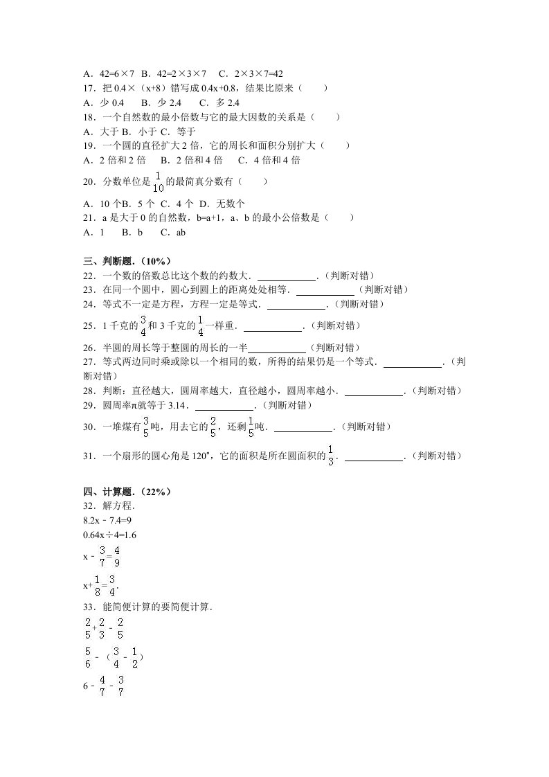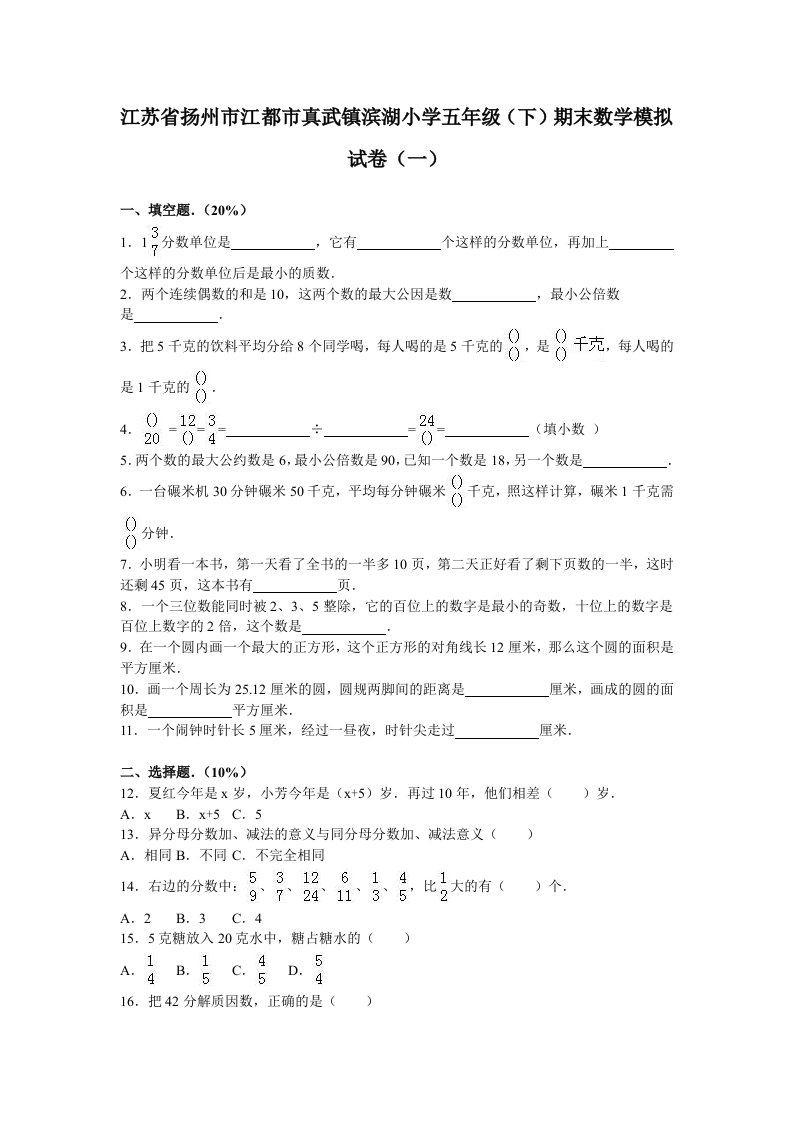 五年级数学下册苏教版下学期期末测试卷2_共17页