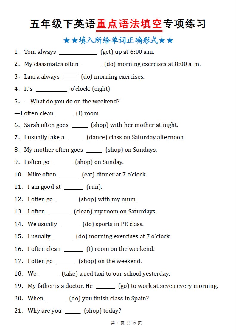 当前位置: 首页小学资源小学五年级正文 五下英语人教PEP重点语法填空专项练习_共15页 小学五年级 6 天前 0 0 10 以上为部分内容预览,如需源文档请登录您的会员账号进行下载! 声明:本站所有文章,如无特殊说明或标注,均为本站原创发布。任何个人或组织,在未征得本站同意时,禁止复制、盗用、采集、发布本站内容到任何网站、书籍等各类媒体平台。如若本站内容侵犯了原著者的合法权益,可联系我们进行处理。 尚学资源永久会员 打赏 收藏 海报 链接