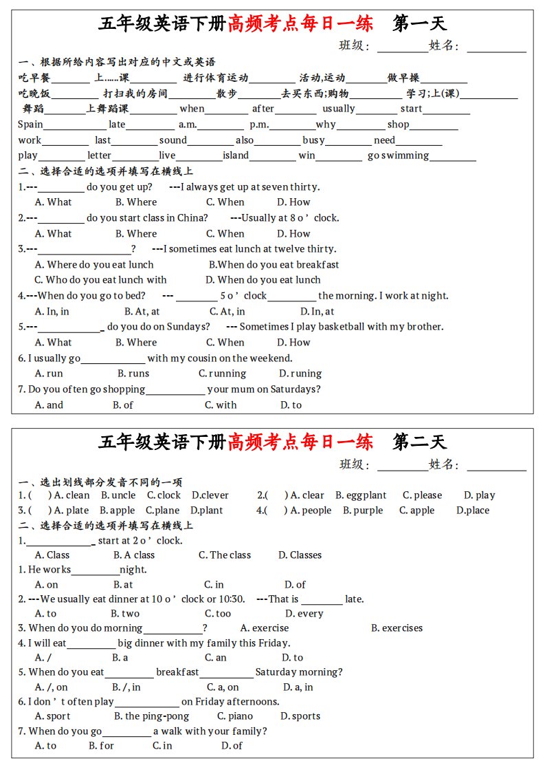 当前位置: 首页小学资源小学五年级正文 五下人教PEP英语高频考点每日一练24天(含答案)_共17页 小学五年级 6 天前 0 0 10 以上为部分内容预览,如需源文档请登录您的会员账号进行下载! 声明:本站所有文章,如无特殊说明或标注,均为本站原创发布。任何个人或组织,在未征得本站同意时,禁止复制、盗用、采集、发布本站内容到任何网站、书籍等各类媒体平台。如若本站内容侵犯了原著者的合法权益,可联系我们进行处理。 尚学资源永久会员 打赏 收藏 海报 链接
