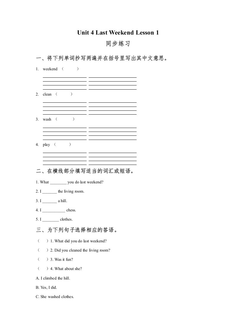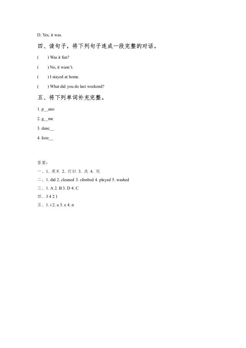 当前位置: 首页小学资源小学五年级正文 五年级英语下册Unit4LastWeekendLesson1同步练习1(人教版)_共2页 小学五年级 6 天前 0 0 5 以上为部分内容预览,如需源文档请登录您的会员账号进行下载! 声明:本站所有文章,如无特殊说明或标注,均为本站原创发布。任何个人或组织,在未征得本站同意时,禁止复制、盗用、采集、发布本站内容到任何网站、书籍等各类媒体平台。如若本站内容侵犯了原著者的合法权益,可联系我们进行处理。 尚学资源永久会员 打赏 收藏 海报 链接