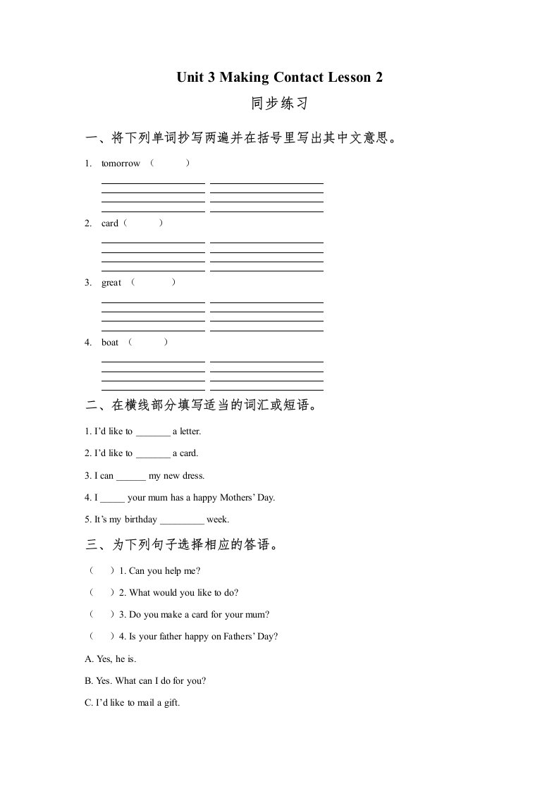 当前位置: 首页小学资源小学五年级正文 五年级英语下册Unit3MakingContactLesson2同步练习1(人教版)_共2页 小学五年级 6 天前 0 0 5 以上为部分内容预览,如需源文档请登录您的会员账号进行下载! 声明:本站所有文章,如无特殊说明或标注,均为本站原创发布。任何个人或组织,在未征得本站同意时,禁止复制、盗用、采集、发布本站内容到任何网站、书籍等各类媒体平台。如若本站内容侵犯了原著者的合法权益,可联系我们进行处理。 尚学资源永久会员 打赏 收藏 海报 链接