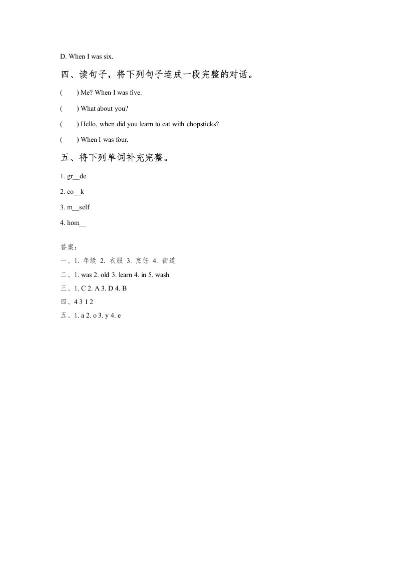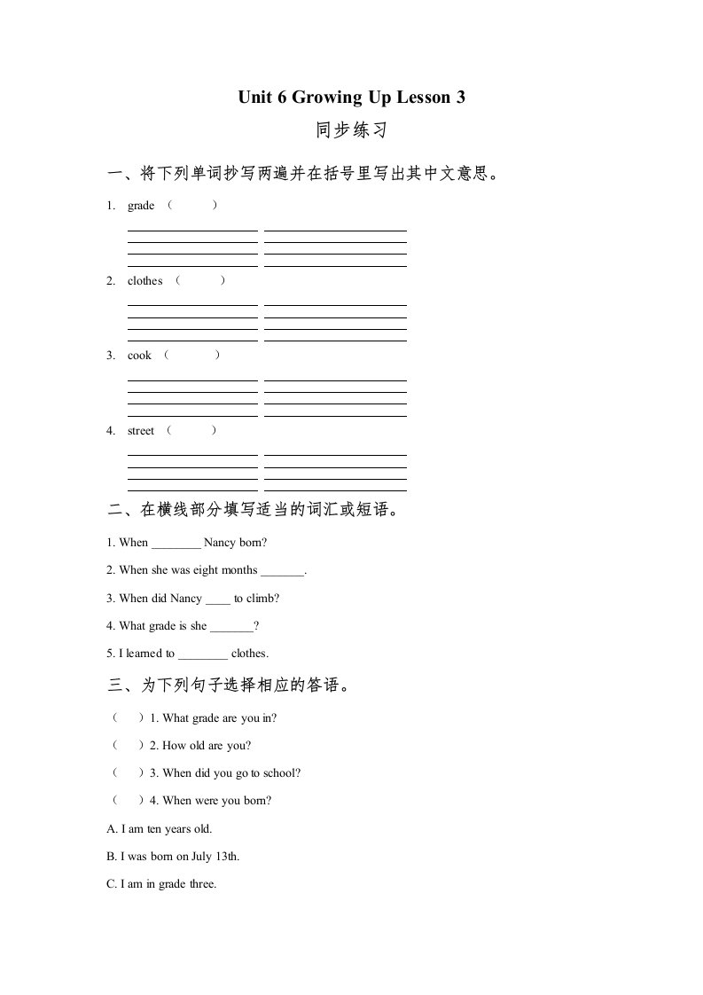 五年级英语下册Unit6GrowingUpLesson3同步练习1(人教版)_共2页
