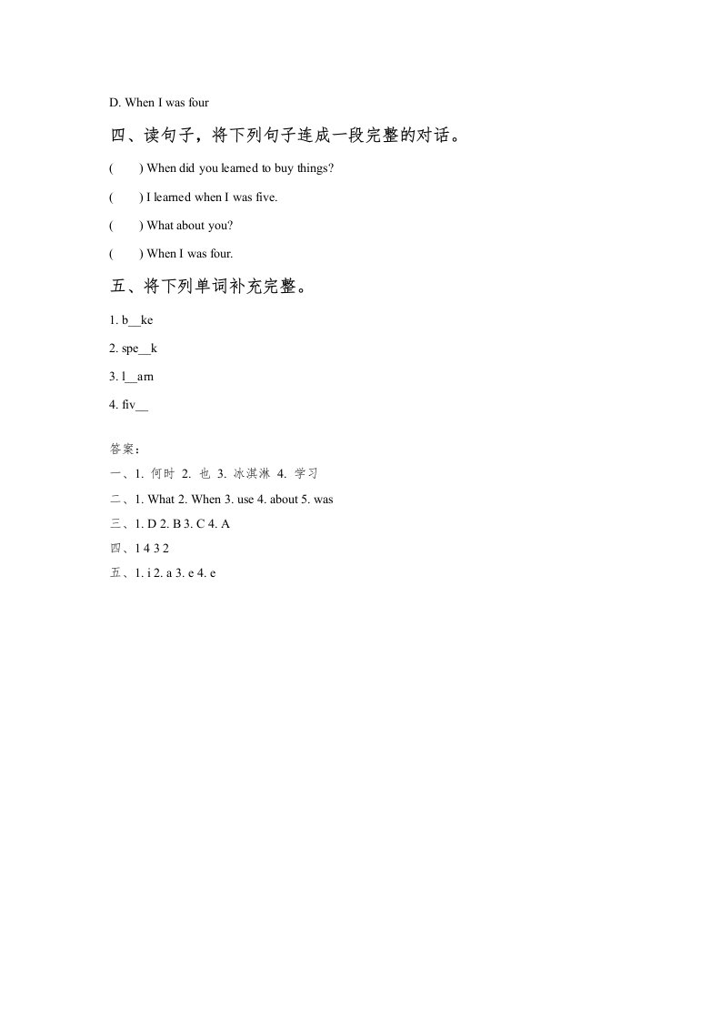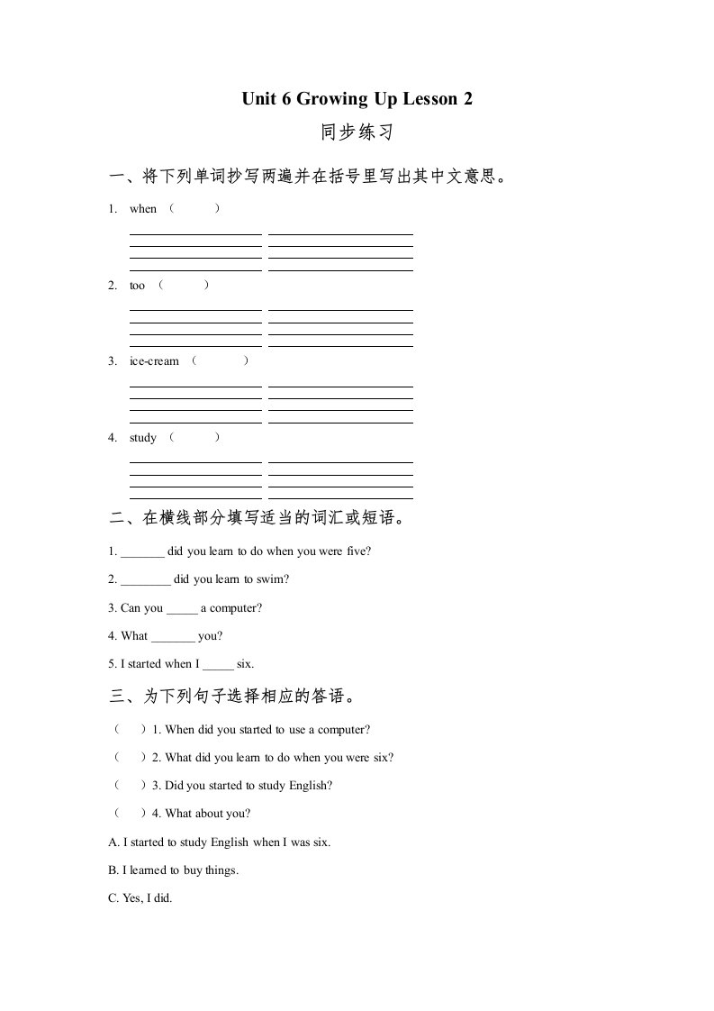 当前位置: 首页小学资源小学五年级正文 五年级英语下册Unit6GrowingUpLesson2同步练习1(人教版)_共2页 小学五年级 6 天前 0 0 5 以上为部分内容预览,如需源文档请登录您的会员账号进行下载! 声明:本站所有文章,如无特殊说明或标注,均为本站原创发布。任何个人或组织,在未征得本站同意时,禁止复制、盗用、采集、发布本站内容到任何网站、书籍等各类媒体平台。如若本站内容侵犯了原著者的合法权益,可联系我们进行处理。 尚学资源永久会员 打赏 收藏 海报 链接