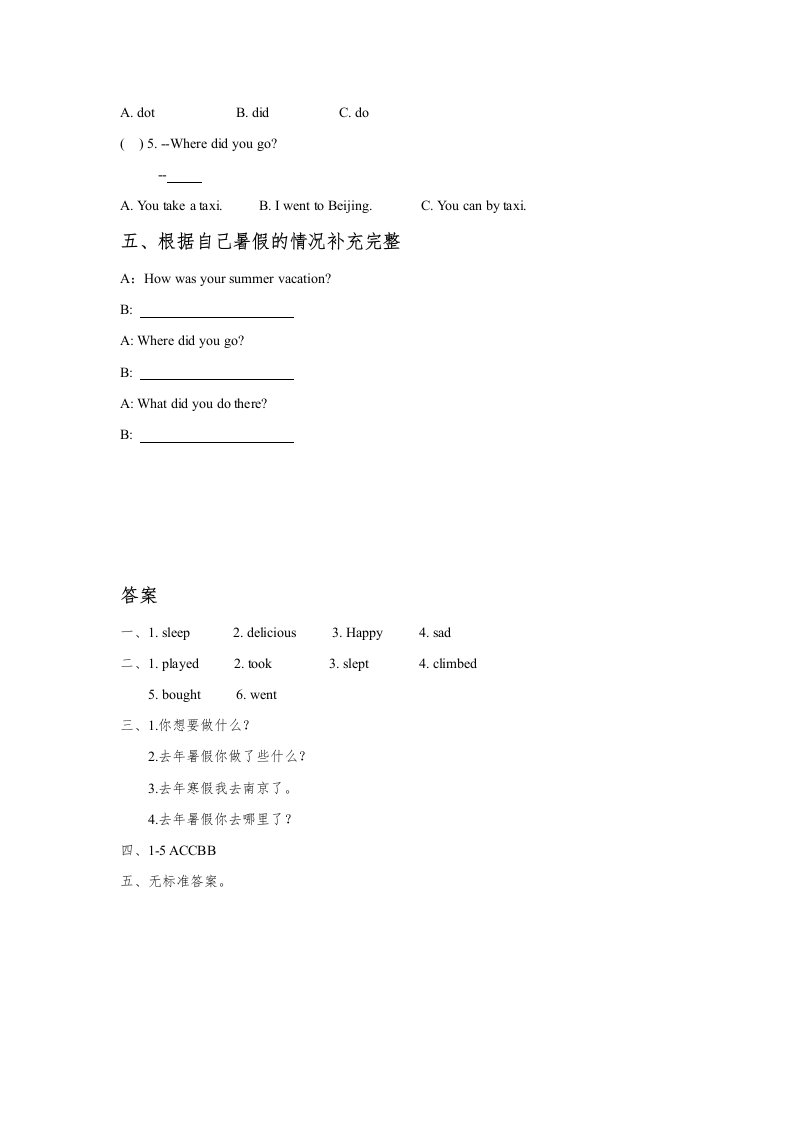 当前位置: 首页小学资源小学五年级正文 五年级英语下册Unit5HaveaGreatTripLesson2同步练习3(人教版)_共3页 小学五年级 6 天前 0 0 5 以上为部分内容预览,如需源文档请登录您的会员账号进行下载! 声明:本站所有文章,如无特殊说明或标注,均为本站原创发布。任何个人或组织,在未征得本站同意时,禁止复制、盗用、采集、发布本站内容到任何网站、书籍等各类媒体平台。如若本站内容侵犯了原著者的合法权益,可联系我们进行处理。 尚学资源永久会员 打赏 收藏 海报 链接