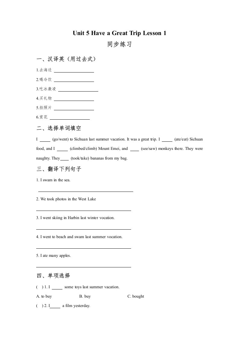 当前位置: 首页小学资源小学五年级正文 五年级英语下册Unit5HaveaGreatTripLesson1同步练习3(人教版)_共3页 小学五年级 7 天前 0 0 5 以上为部分内容预览,如需源文档请登录您的会员账号进行下载! 声明:本站所有文章,如无特殊说明或标注,均为本站原创发布。任何个人或组织,在未征得本站同意时,禁止复制、盗用、采集、发布本站内容到任何网站、书籍等各类媒体平台。如若本站内容侵犯了原著者的合法权益,可联系我们进行处理。 尚学资源永久会员 打赏 收藏 海报 链接