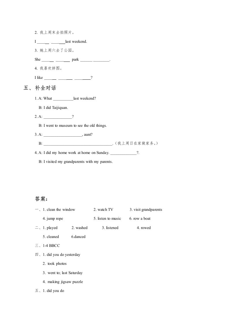 当前位置: 首页小学资源小学五年级正文 五年级英语下册Unit4LastWeekendLesson1同步练习3(人教版)_共3页 小学五年级 6 天前 0 0 5 以上为部分内容预览,如需源文档请登录您的会员账号进行下载! 声明:本站所有文章,如无特殊说明或标注,均为本站原创发布。任何个人或组织,在未征得本站同意时,禁止复制、盗用、采集、发布本站内容到任何网站、书籍等各类媒体平台。如若本站内容侵犯了原著者的合法权益,可联系我们进行处理。 尚学资源永久会员 打赏 收藏 海报 链接