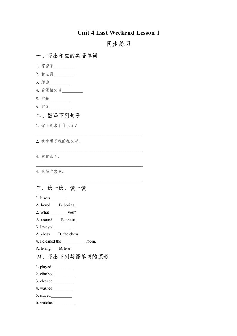 当前位置: 首页小学资源小学五年级正文 五年级英语下册Unit4LastWeekendLesson1同步练习2(人教版)_共2页 小学五年级 6 天前 0 0 5 以上为部分内容预览,如需源文档请登录您的会员账号进行下载! 声明:本站所有文章,如无特殊说明或标注,均为本站原创发布。任何个人或组织,在未征得本站同意时,禁止复制、盗用、采集、发布本站内容到任何网站、书籍等各类媒体平台。如若本站内容侵犯了原著者的合法权益,可联系我们进行处理。 尚学资源永久会员 打赏 收藏 海报 链接