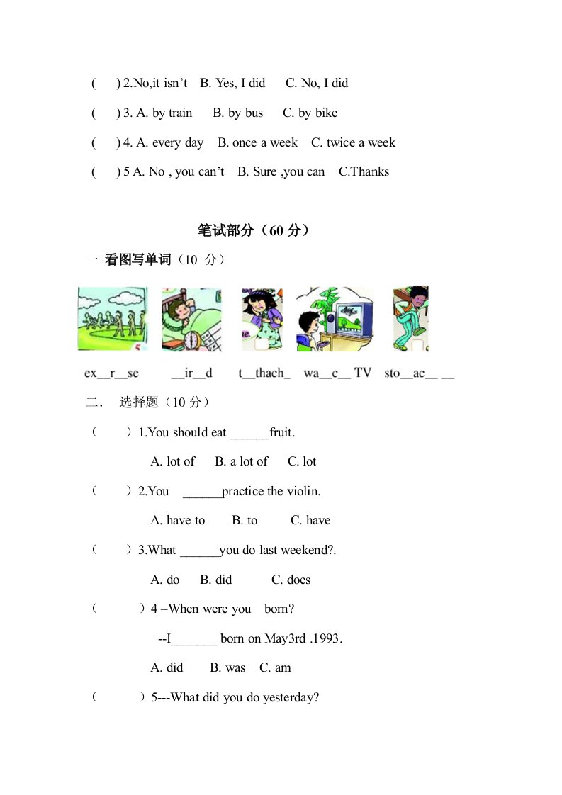 当前位置: 首页小学资源小学五年级正文 五年级英语下册期末试卷3(人教版)_共6页 小学五年级 6 天前 0 0 5 以上为部分内容预览,如需源文档请登录您的会员账号进行下载! 声明:本站所有文章,如无特殊说明或标注,均为本站原创发布。任何个人或组织,在未征得本站同意时,禁止复制、盗用、采集、发布本站内容到任何网站、书籍等各类媒体平台。如若本站内容侵犯了原著者的合法权益,可联系我们进行处理。 尚学资源永久会员 打赏 收藏 海报 链接