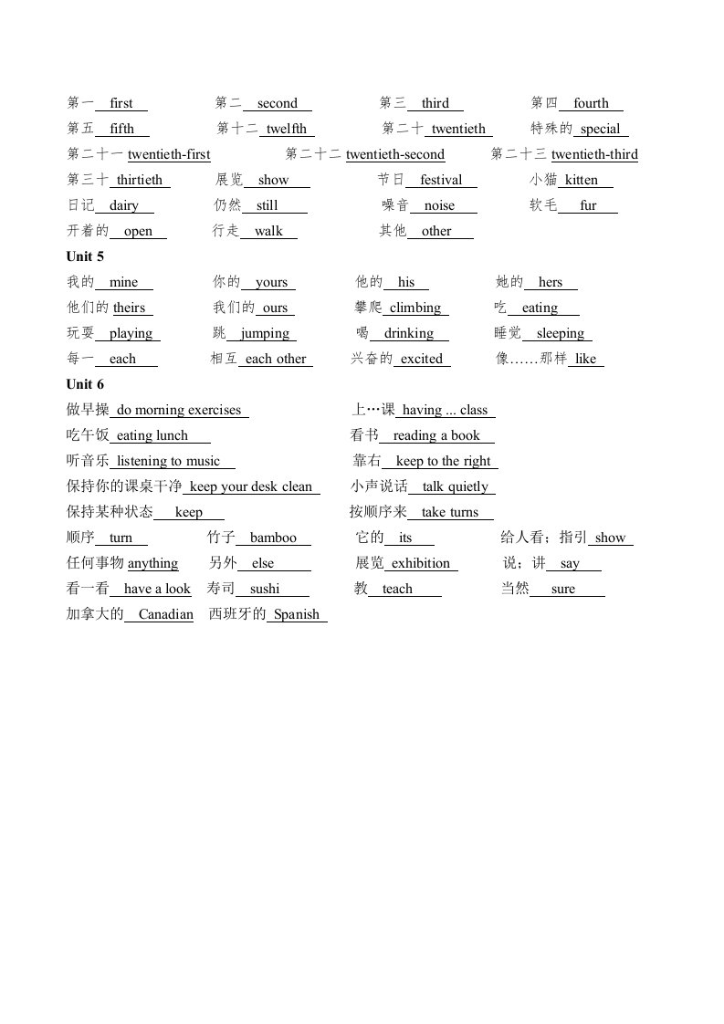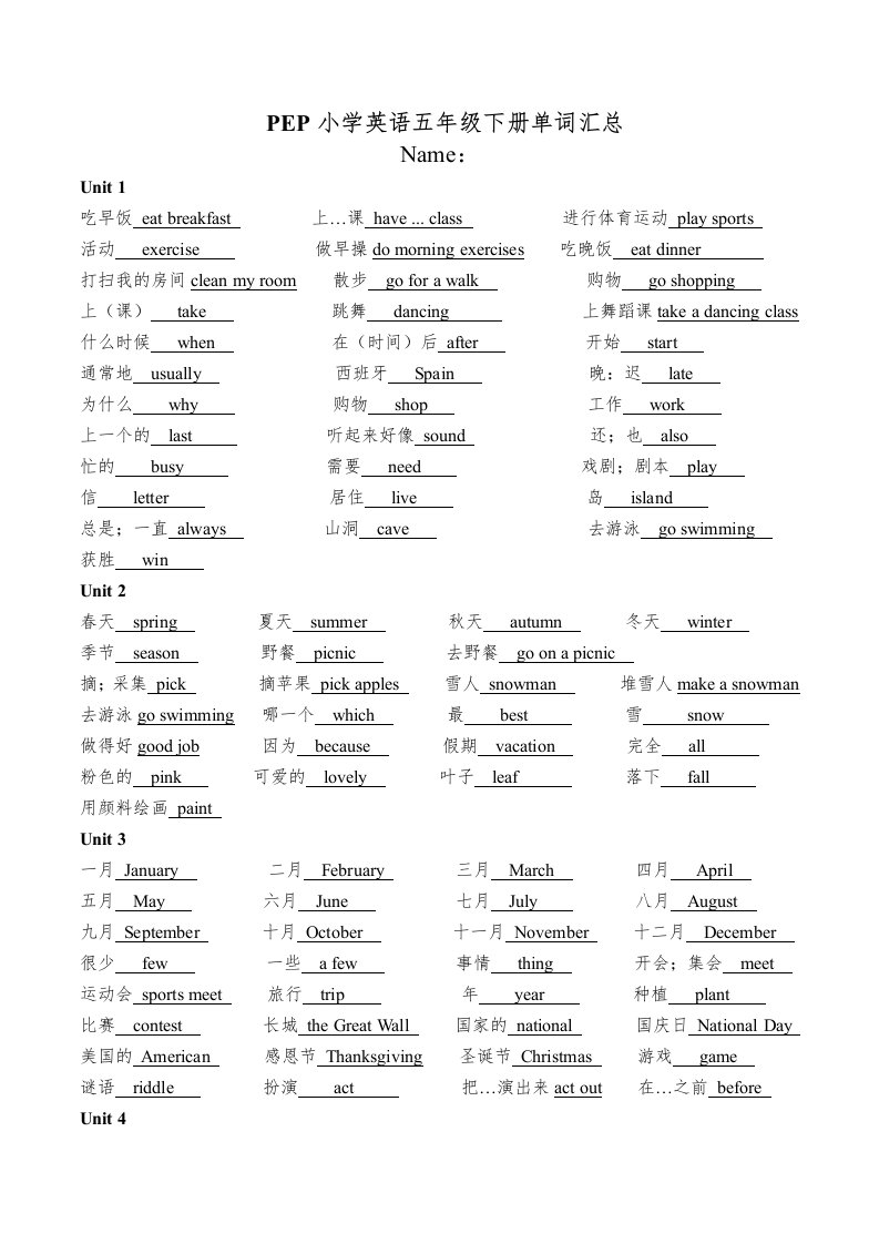 五年级英语下册PEP五英下单词汇总(答案)(人教PEP版)_共2页