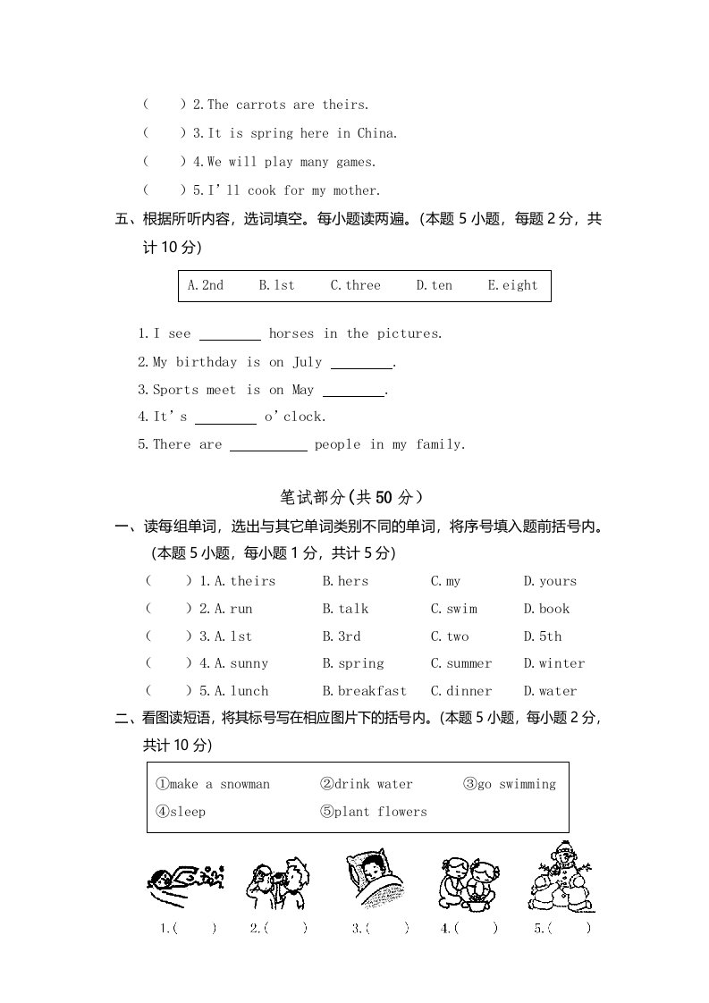 当前位置: 首页小学资源小学五年级正文 五年级英语下册真卷10(人教PEP版)_共4页 小学五年级 6 天前 0 0 5 以上为部分内容预览,如需源文档请登录您的会员账号进行下载! 声明:本站所有文章,如无特殊说明或标注,均为本站原创发布。任何个人或组织,在未征得本站同意时,禁止复制、盗用、采集、发布本站内容到任何网站、书籍等各类媒体平台。如若本站内容侵犯了原著者的合法权益,可联系我们进行处理。 尚学资源永久会员 打赏 收藏 海报 链接