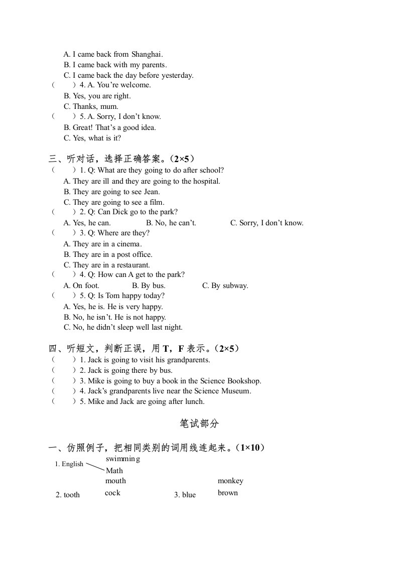 当前位置: 首页小学资源小学五年级正文 五年级英语下册期末测试卷4(人教PEP版)_共12页 小学五年级 6 天前 0 0 10 以上为部分内容预览,如需源文档请登录您的会员账号进行下载! 声明:本站所有文章,如无特殊说明或标注,均为本站原创发布。任何个人或组织,在未征得本站同意时,禁止复制、盗用、采集、发布本站内容到任何网站、书籍等各类媒体平台。如若本站内容侵犯了原著者的合法权益,可联系我们进行处理。 尚学资源永久会员 打赏 收藏 海报 链接