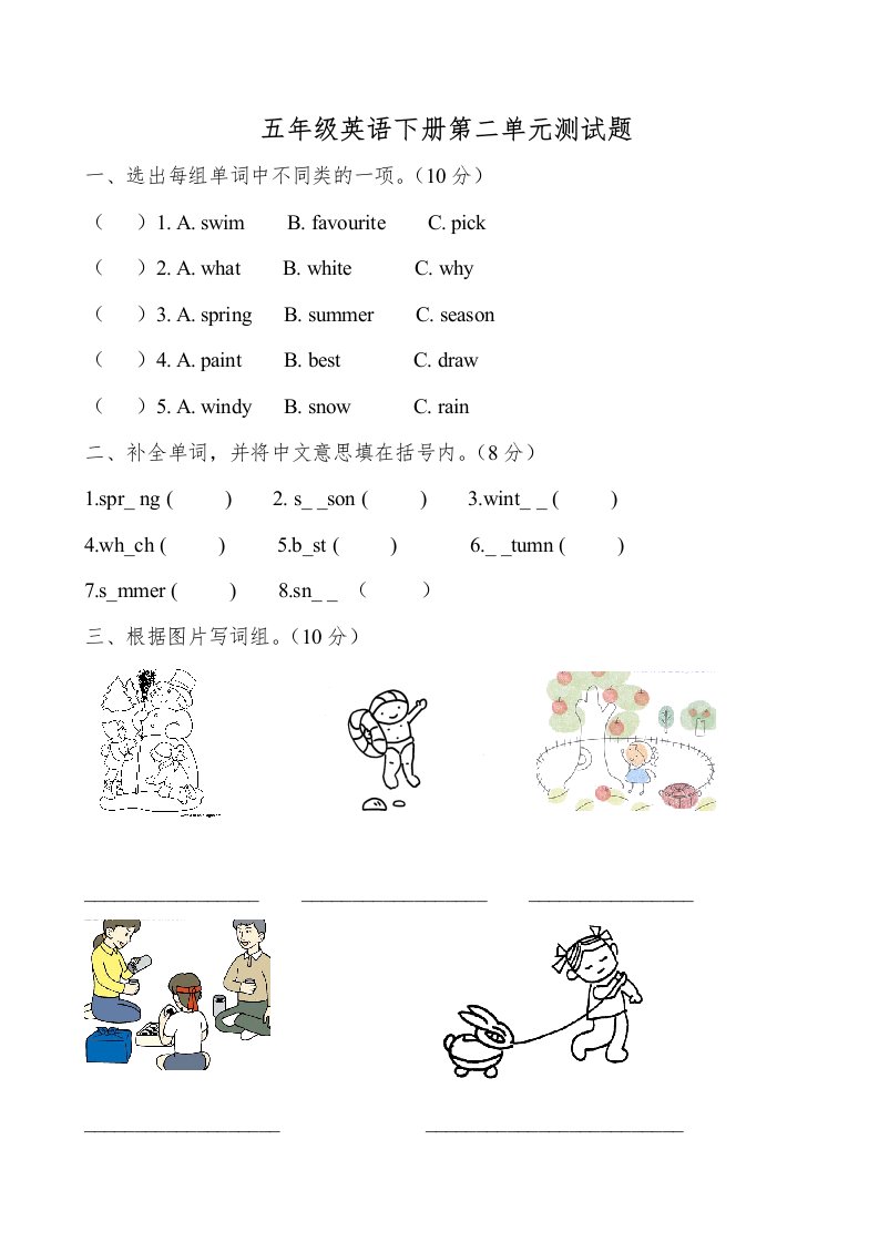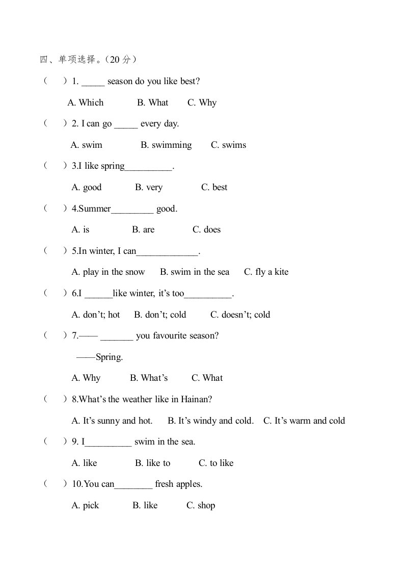五年级英语下册3Unit2单元检测(人教PEP版)_共4页