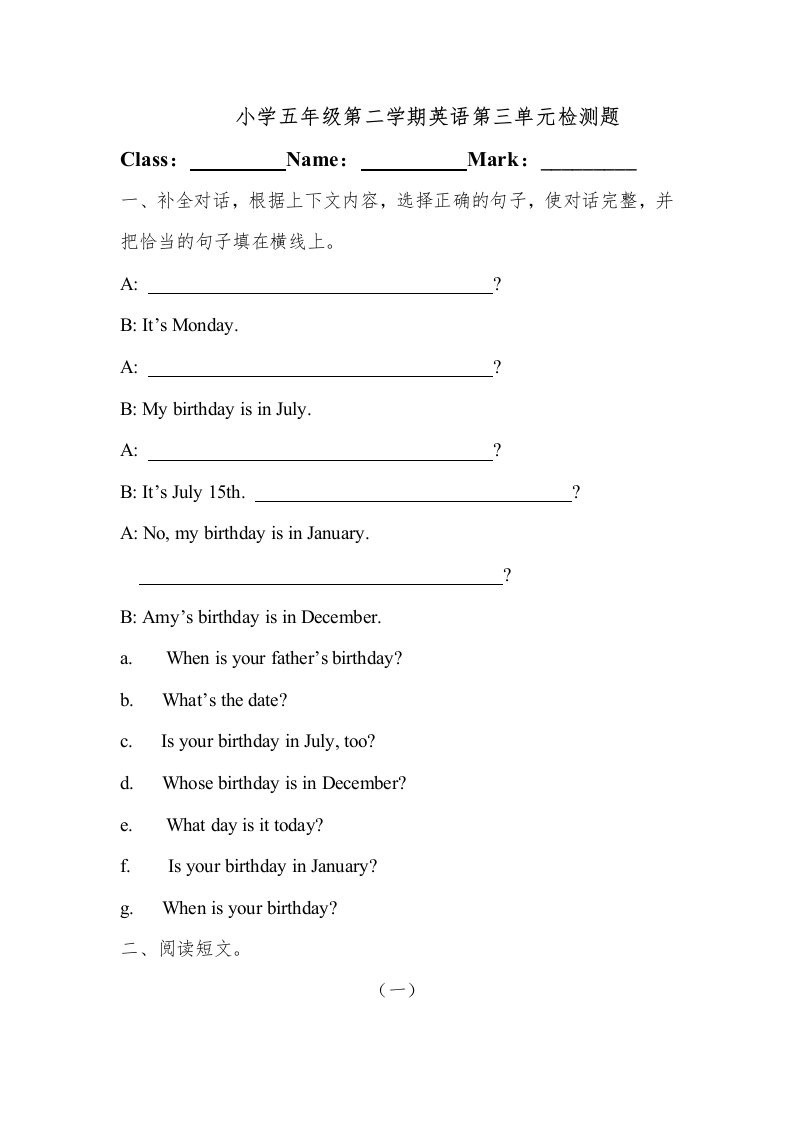 当前位置: 首页小学资源小学五年级正文 五年级英语下册3Unit6单元检测(人教PEP版)_共2页 小学五年级 6 天前 0 0 5 以上为部分内容预览,如需源文档请登录您的会员账号进行下载! 声明:本站所有文章,如无特殊说明或标注,均为本站原创发布。任何个人或组织,在未征得本站同意时,禁止复制、盗用、采集、发布本站内容到任何网站、书籍等各类媒体平台。如若本站内容侵犯了原著者的合法权益,可联系我们进行处理。 尚学资源永久会员 打赏 收藏 海报 链接