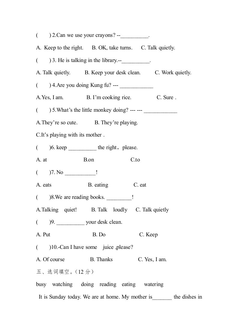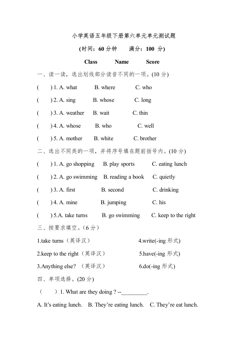 五年级英语下册2Unit6单元检测(人教PEP版)_共4页